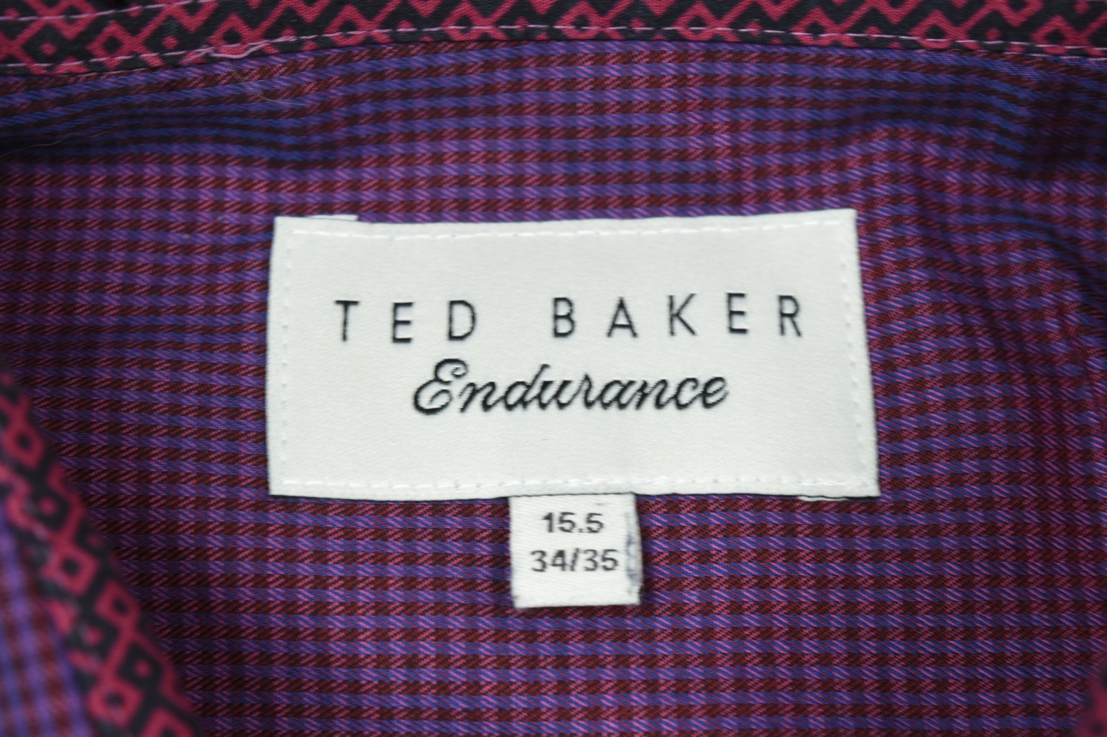 как выглядит Ted Baker Endurance Shirt Mens 15.5 Purple Check Long Sleeve Button-Up Cotton фото