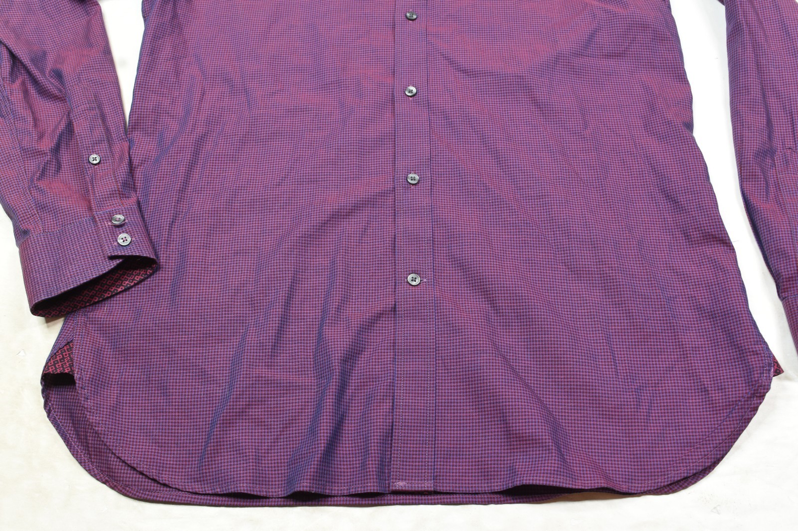Ted Baker Endurance Shirt Mens 15.5 Purple Check Long Sleeve Button-Up Cotton