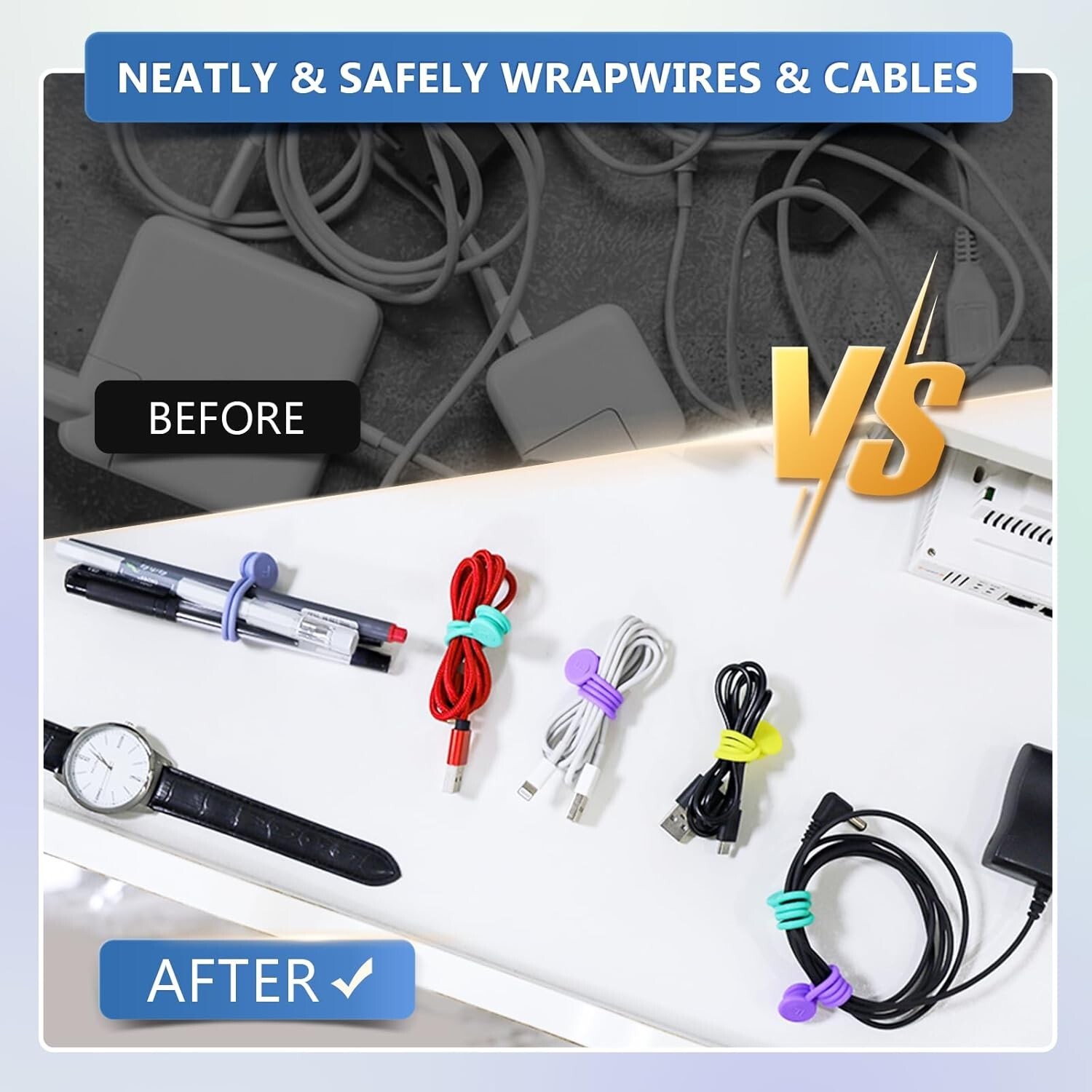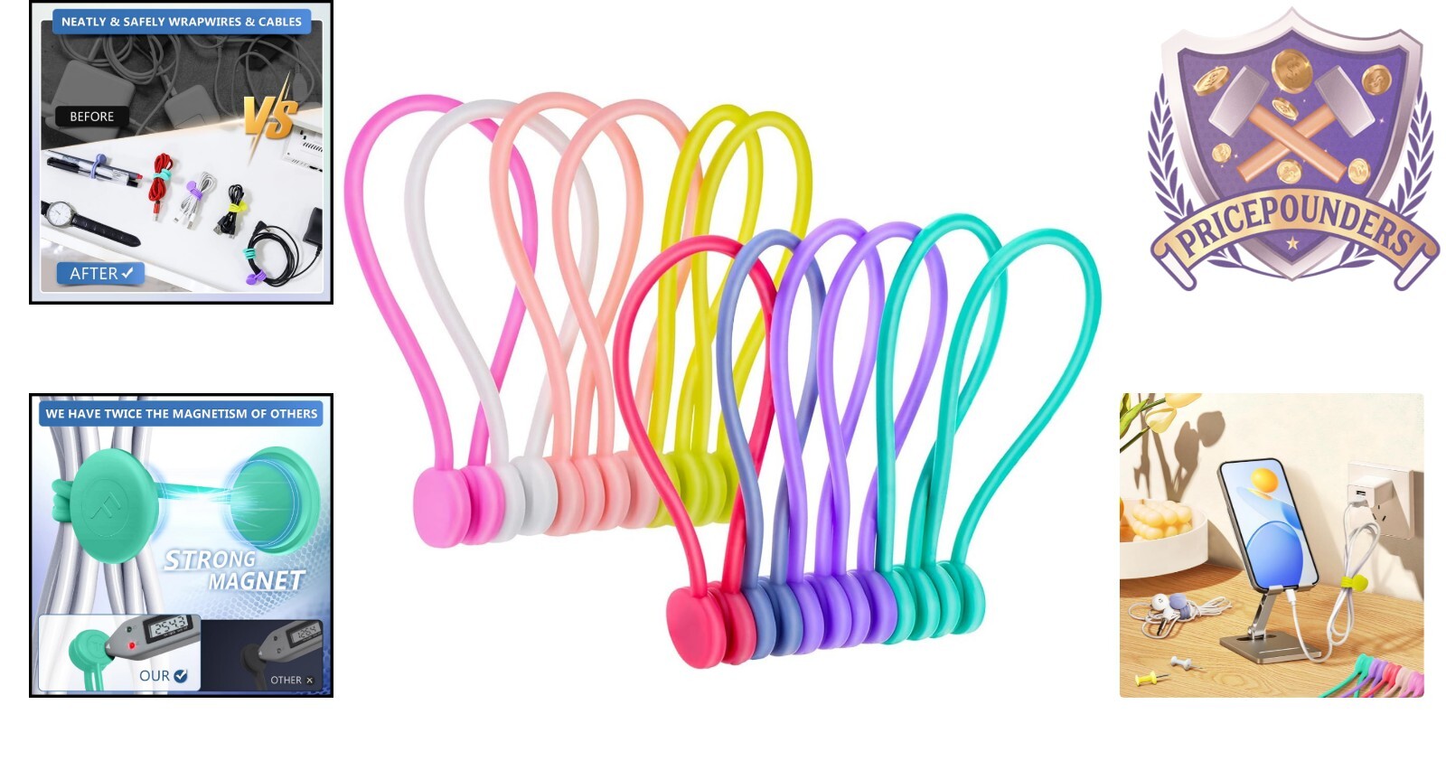 как выглядит Colorful Silicone Magnetic Cable Clips  12-Pack for Home Office Organization фото