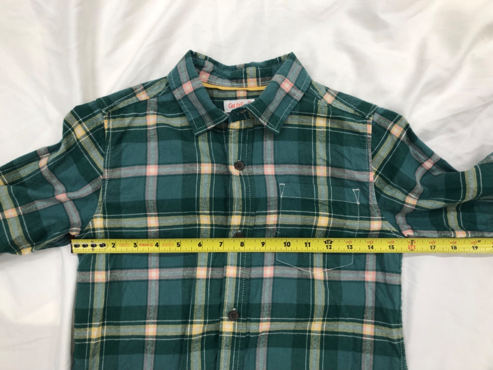 как выглядит Cat and Jack boys size 8/10 green plaid flannel shirt фото