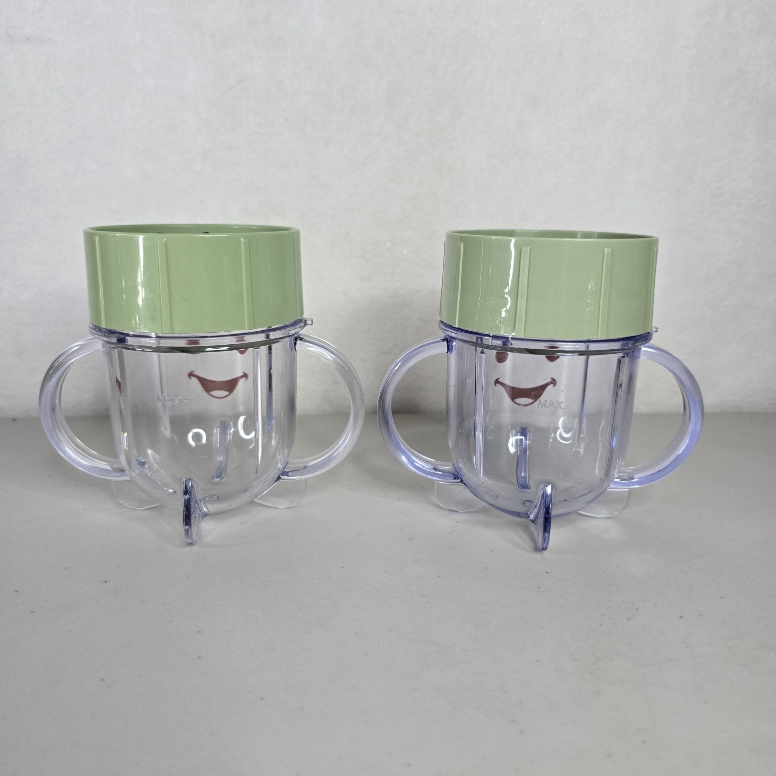 Lot Of 2 Baby Bullet Short Cups With Milling Blade Lids Replacements