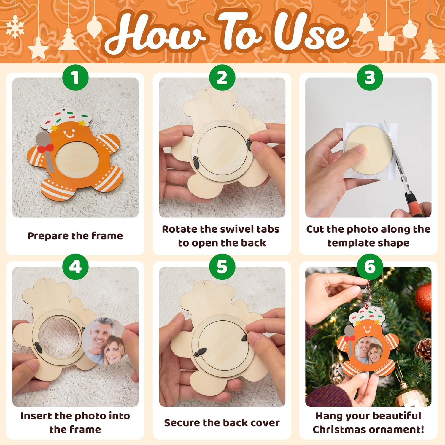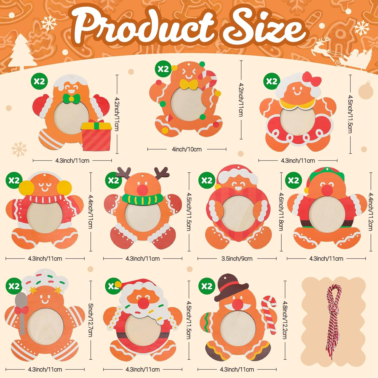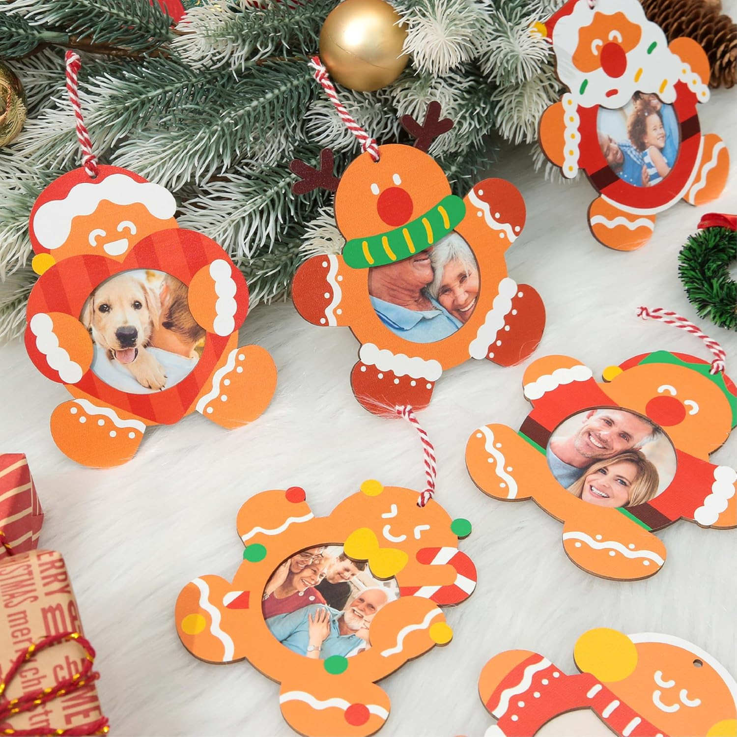 20PCS Christmas Picture Frame Ornaments, 10 Styles Wooden Gingerbread Man Photo