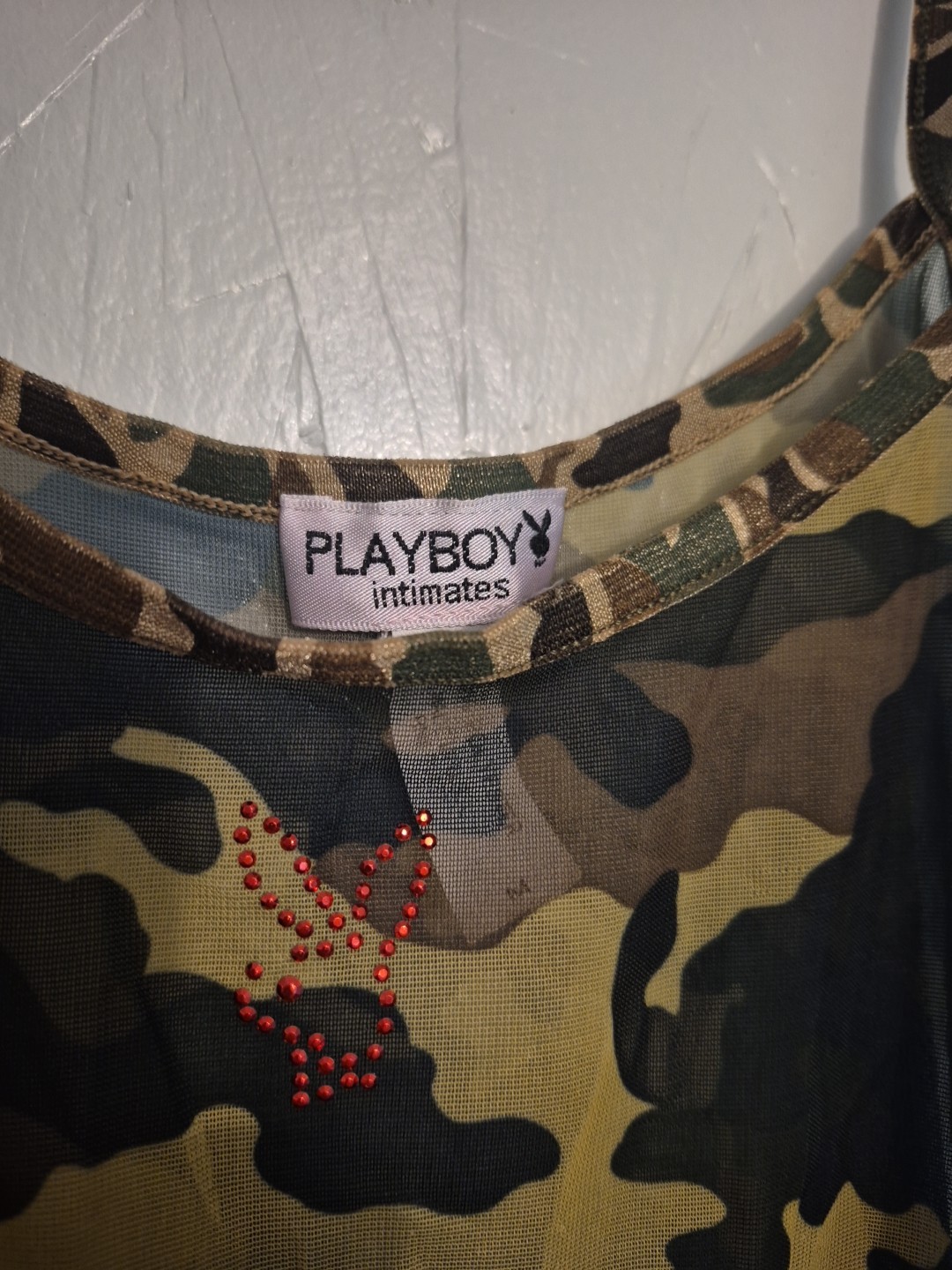 как выглядит Y2k Vtg Rare PLAYBOY INTIMATES CAMO CAMISOLE See Thru Red Rhinestoned M фото