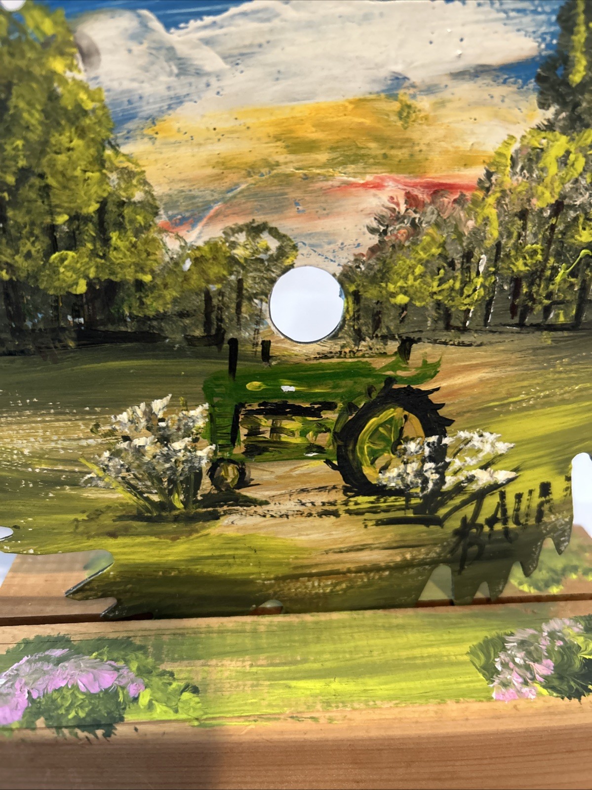 Unique Hand Painted Signed Saw Blade With Stand