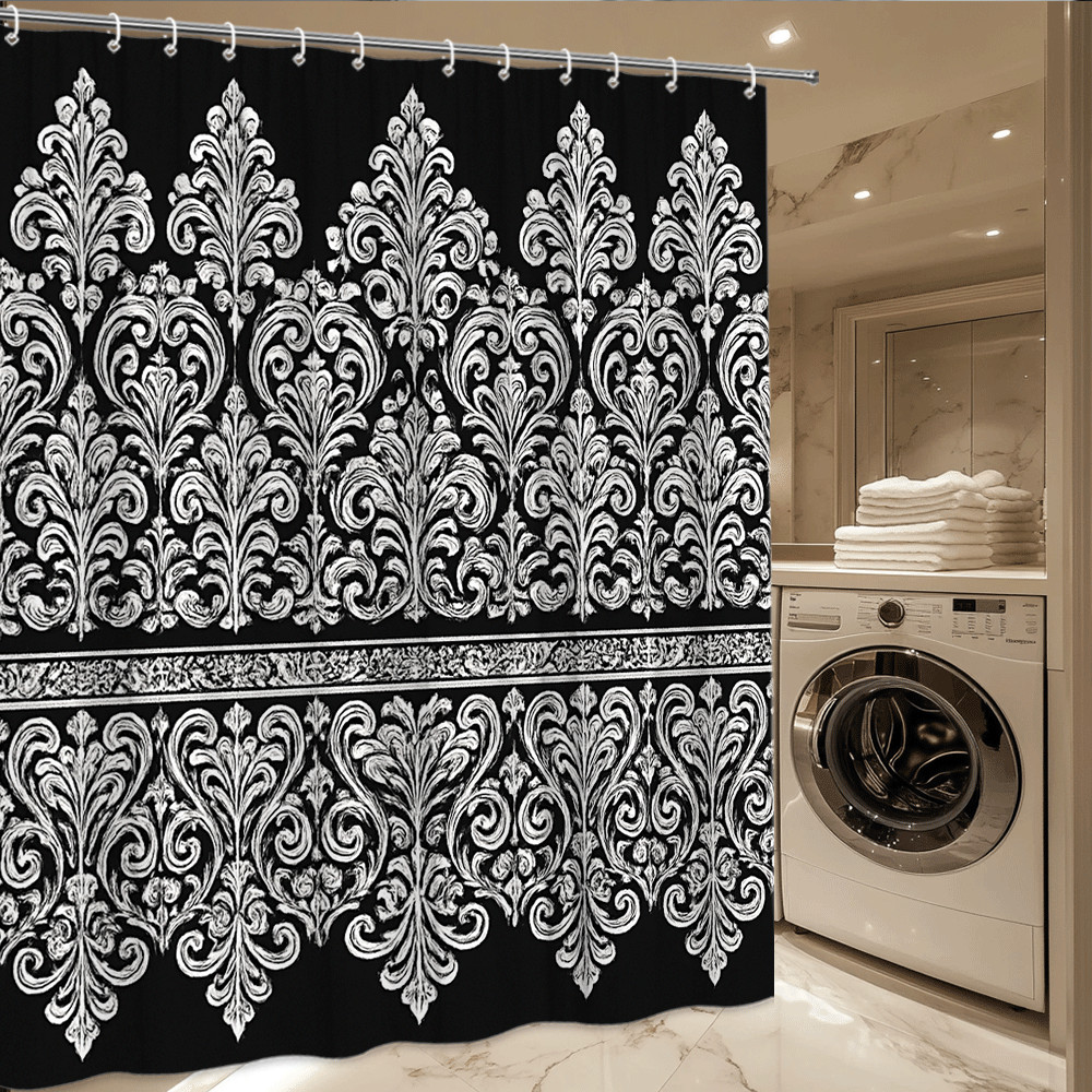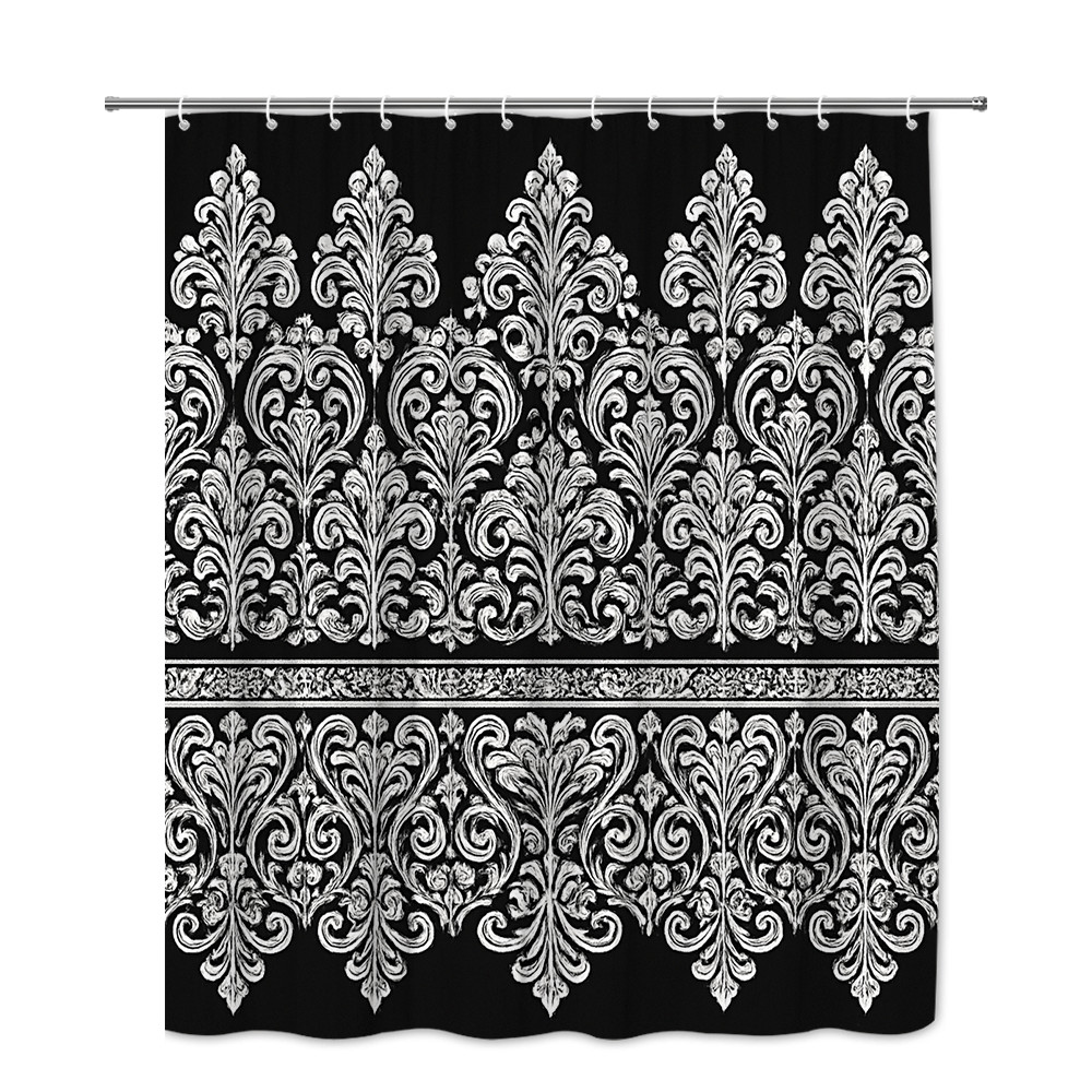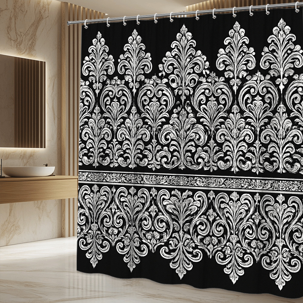 Elegant Floral Black and White Shower Curtain for Bathroom Decor