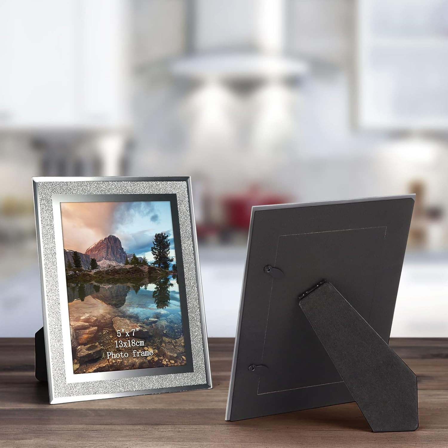 4 Pack 5x7 Sparkle Glass Picture Frame, Glitter Edge Photo Frames for Tabletop,