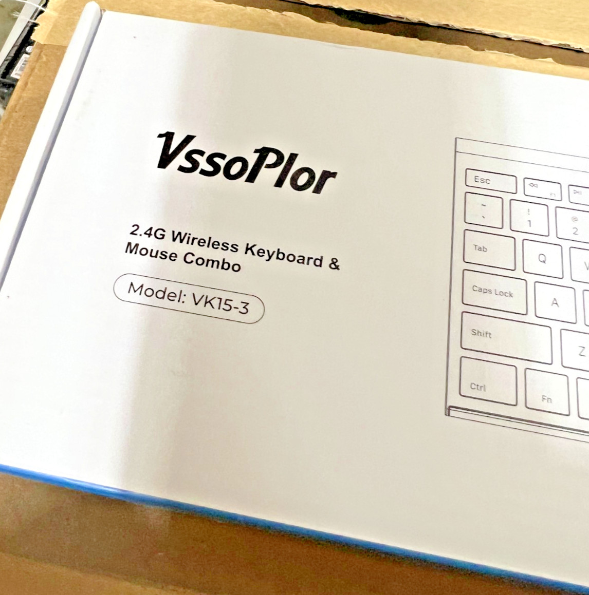 Vssoplor Wireless Keyboard and Mouse Set 2.4GHz, Rechargeable, Model Vk15-3