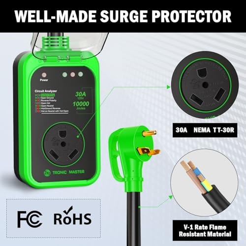 RV Surge Protectormp -10000Joules RV Power Surge RV Circuit Analyzer 30A Green
