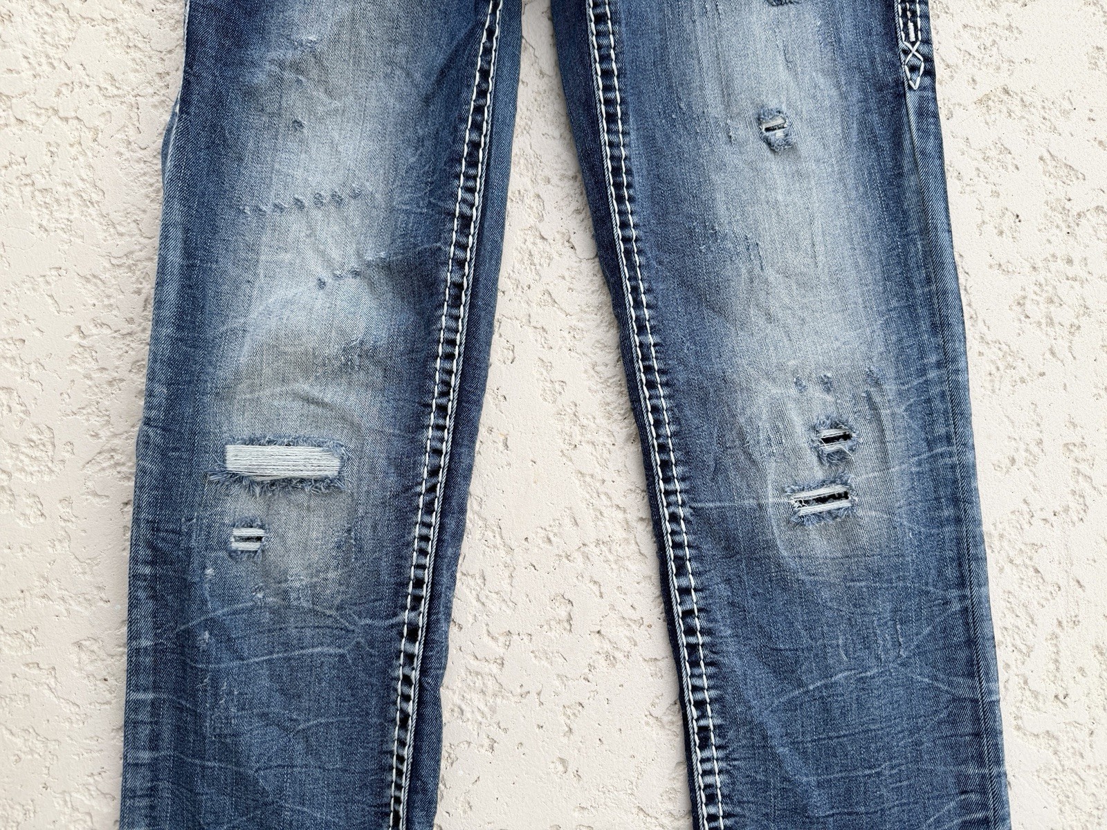 как выглядит Rock Revival Jeans Women Size 27 Sequins Distressed Rhinestone Thick Stitch Blue фото
