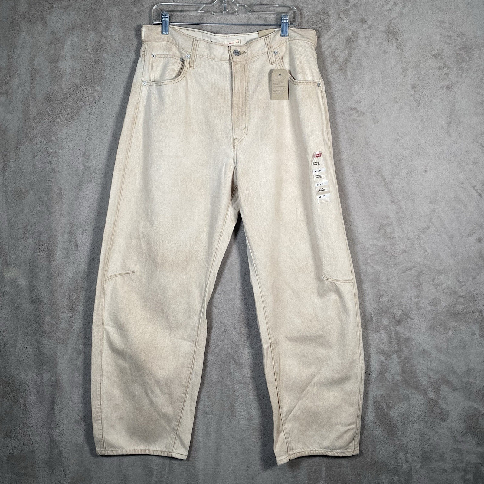 как выглядит Levi s Cinch Barrel Jeans Womens 32x31 Baggy High Rise Cloudy Travertine Tan фото