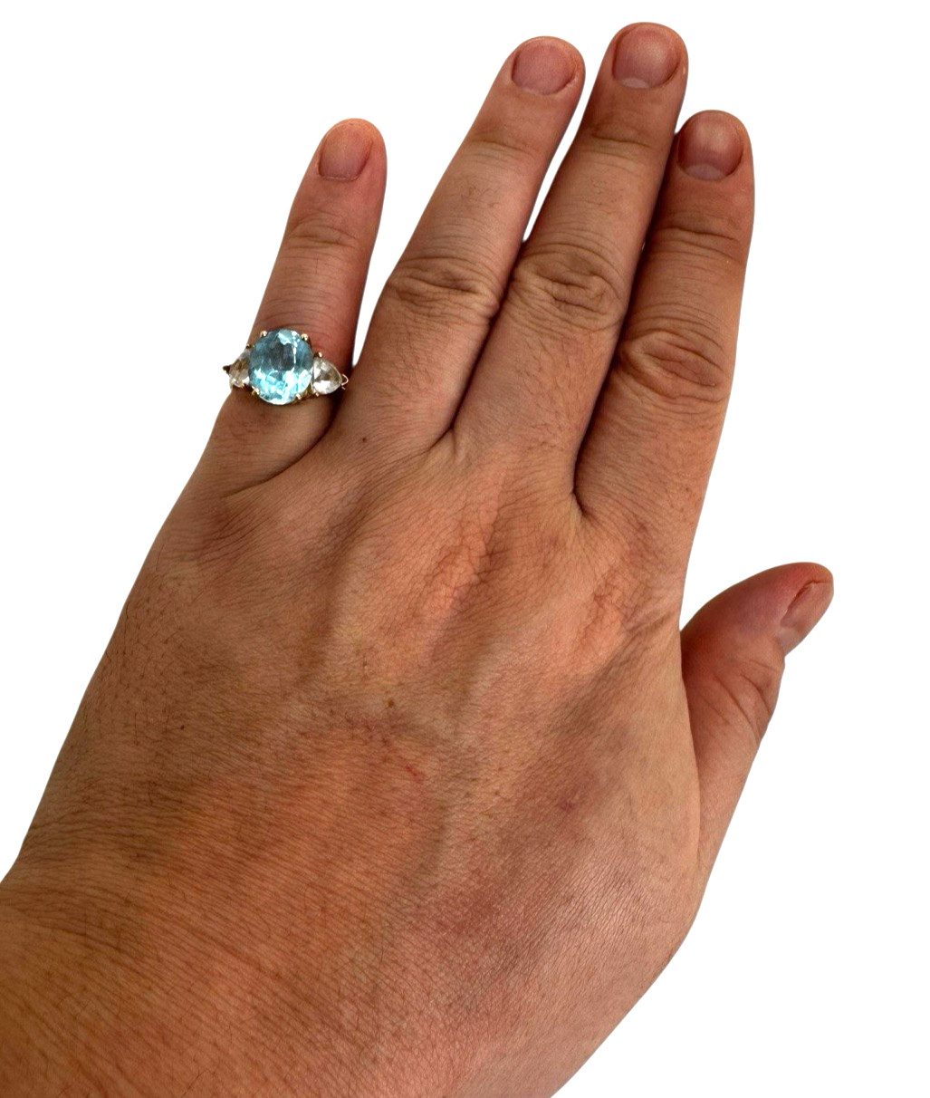 Solid 14K Yellow Gold Blue and White Topaz Ring Size 8