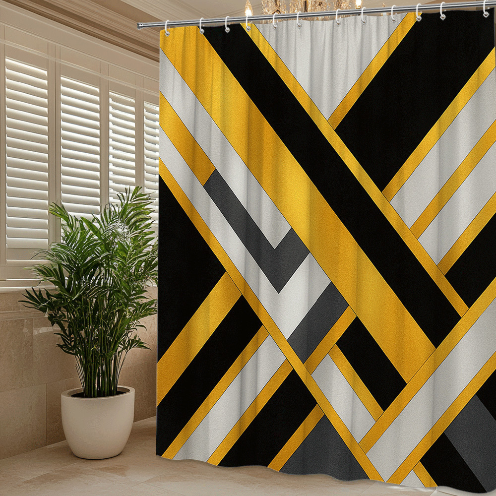 Modern Black and Gold Shower Curtain, Waterproof Fabric, Stylish Design