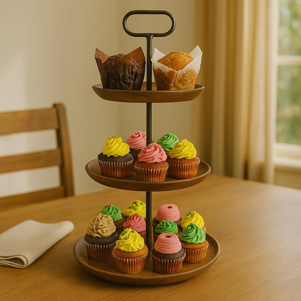 Acacia Wood 3-Tier Display Stand Rustic Cupcake Tower, Multi-Layer Dessert ...