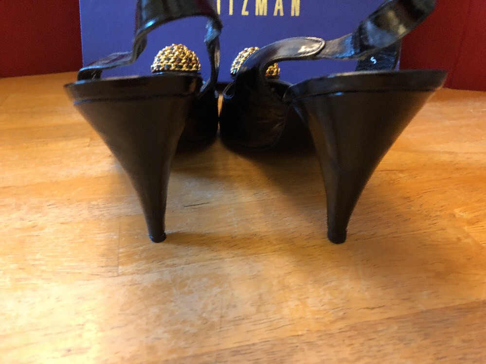 как выглядит Stuart Weitzman Black patent heel with gold chain/cut out detail Size 7.5B фото