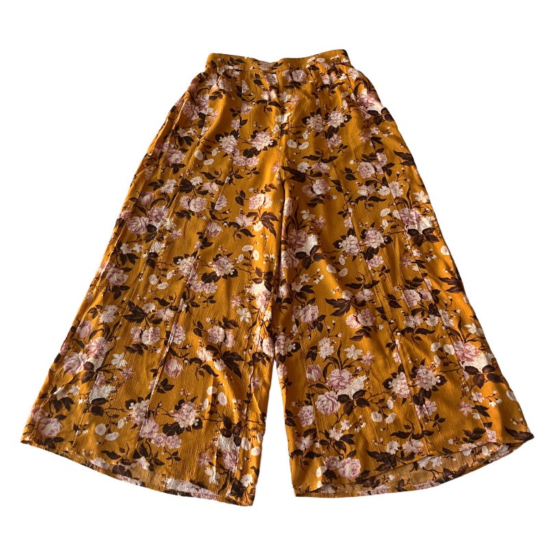 как выглядит Womens American Eagle Outfitters Small Pumpkin Orange Floral Wide Leg Crop Pants фото