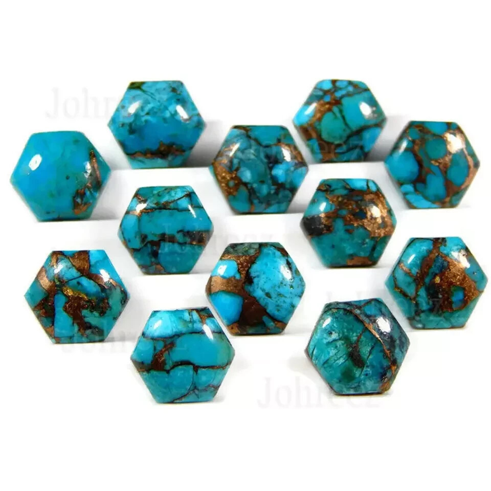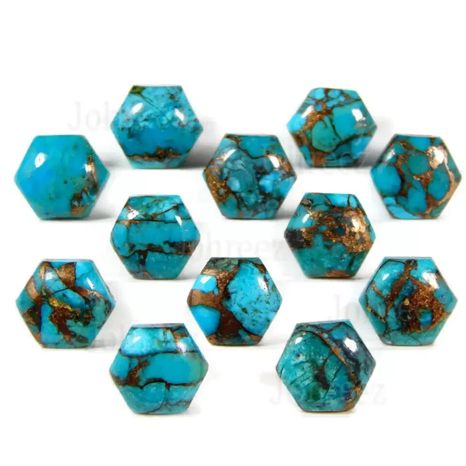 AAA Blue Copper Turquoise Cabochon Hexagon Shape Loose Gemstone