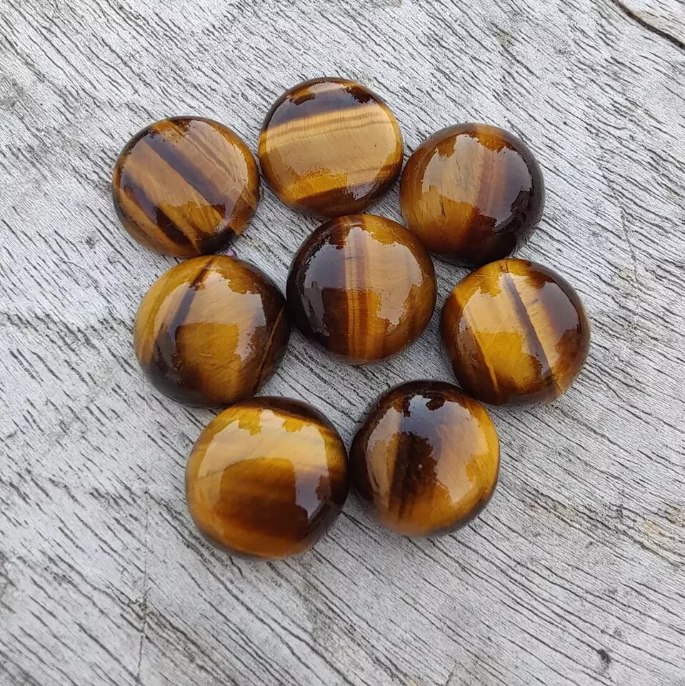 как выглядит AAA Natural Tiger Eye Cabochon Round Shape Loose Gemstone фото
