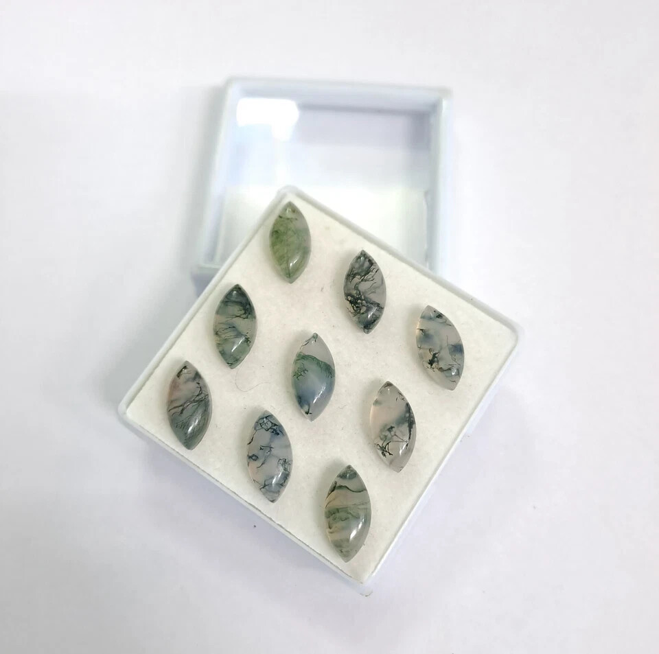 как выглядит AAA Natural Moss Agate Cabochon Marquise Shape Loose Gemstone фото