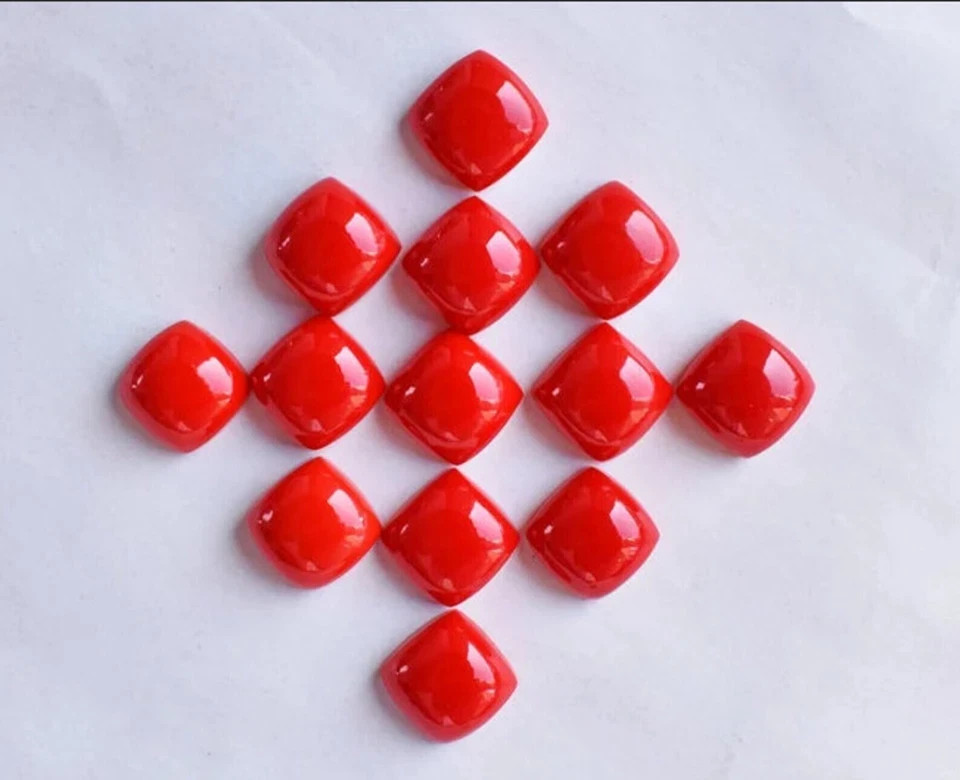 AAA Synthetic Red Coral Cabochon Cushion Shape Loose Gemstone