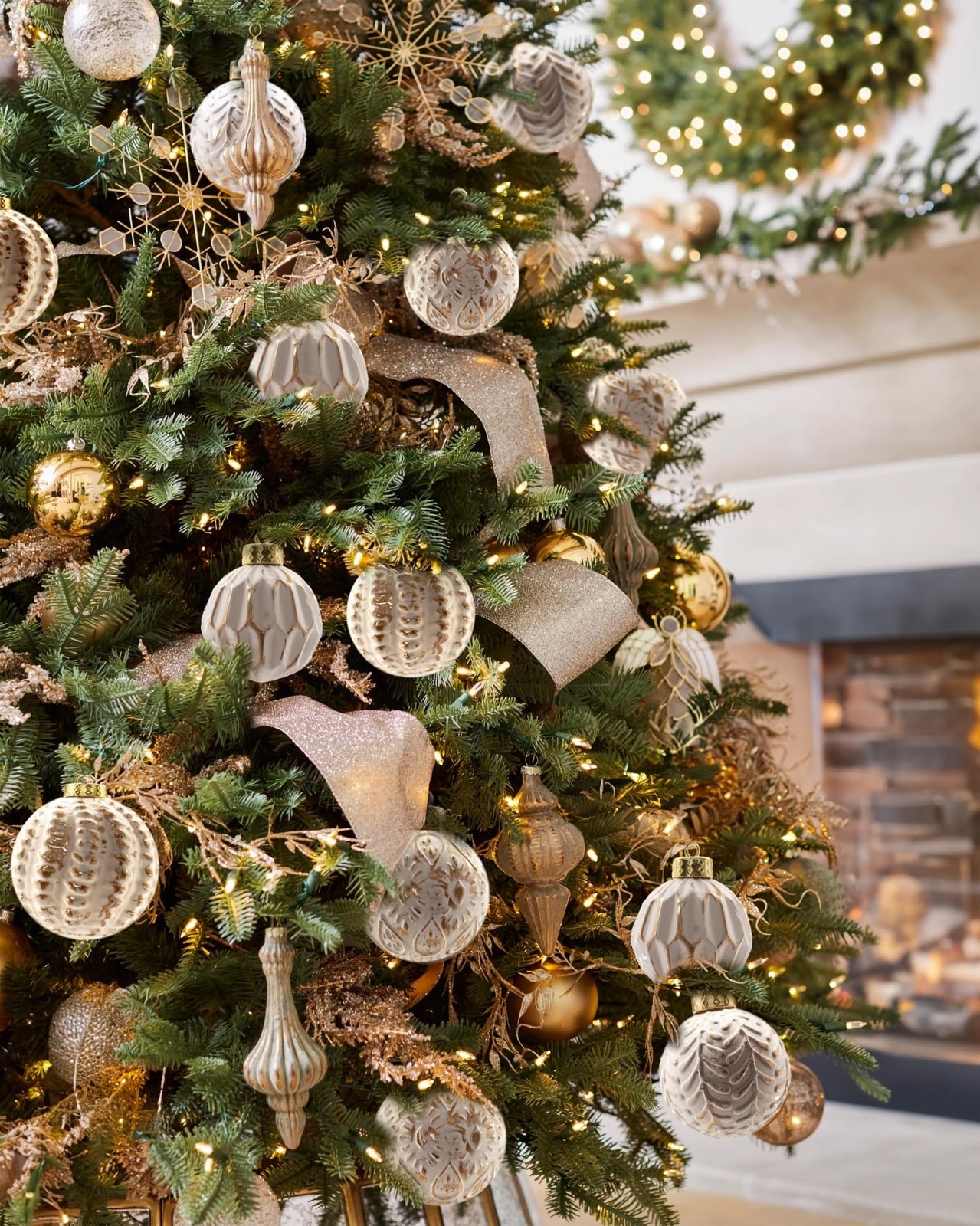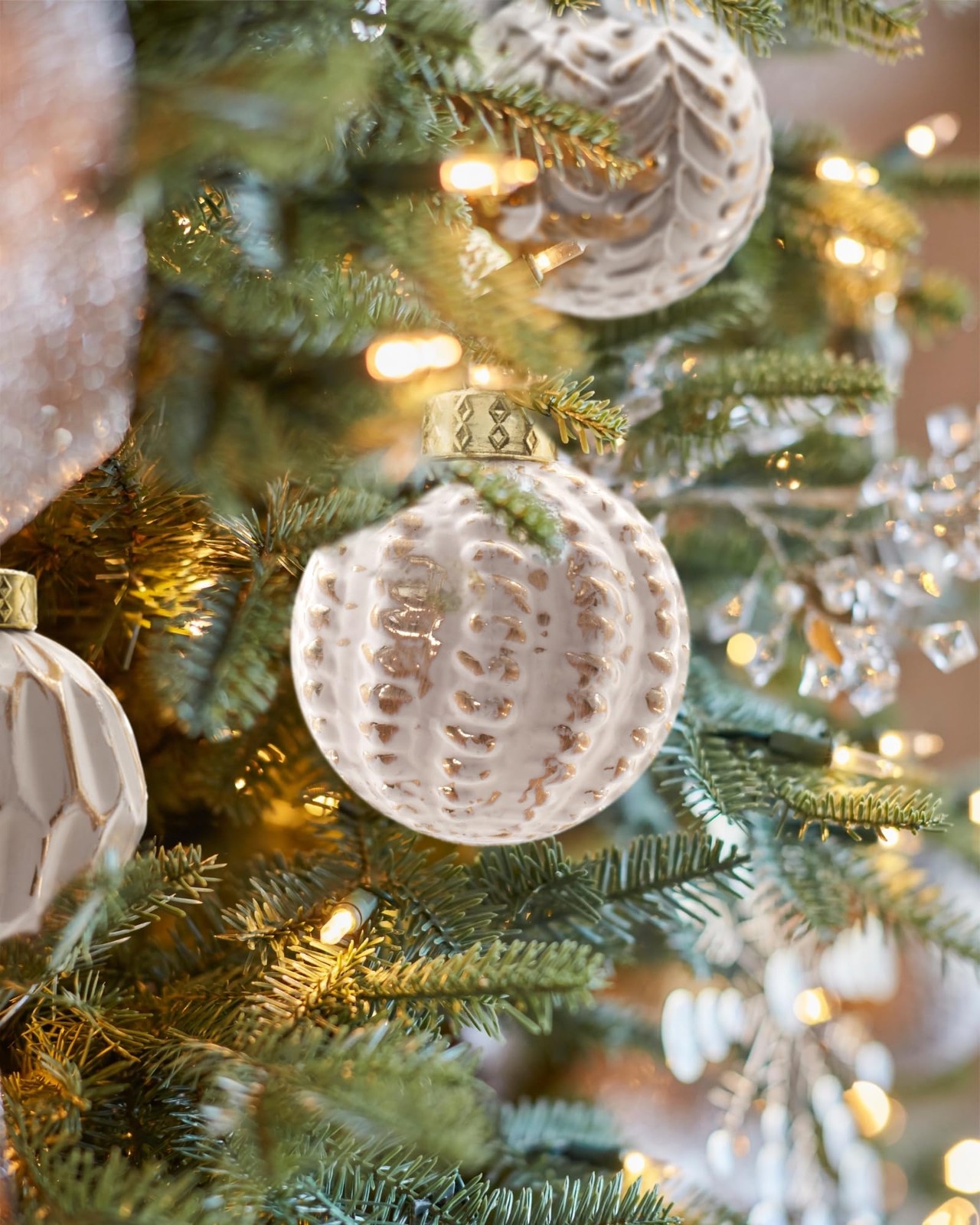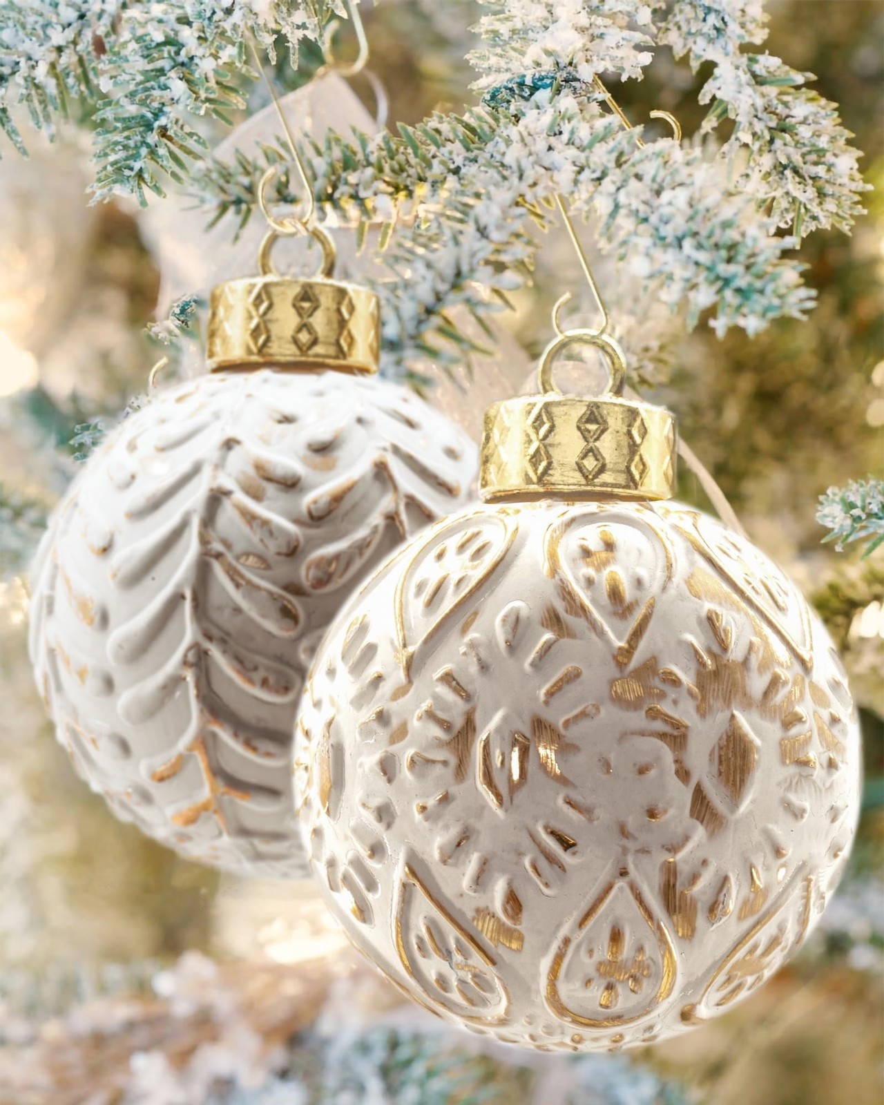 как выглядит White and Gold Rustic Christmas Ball Ornaments, 3.15 inches Vintage Christmas... фото
