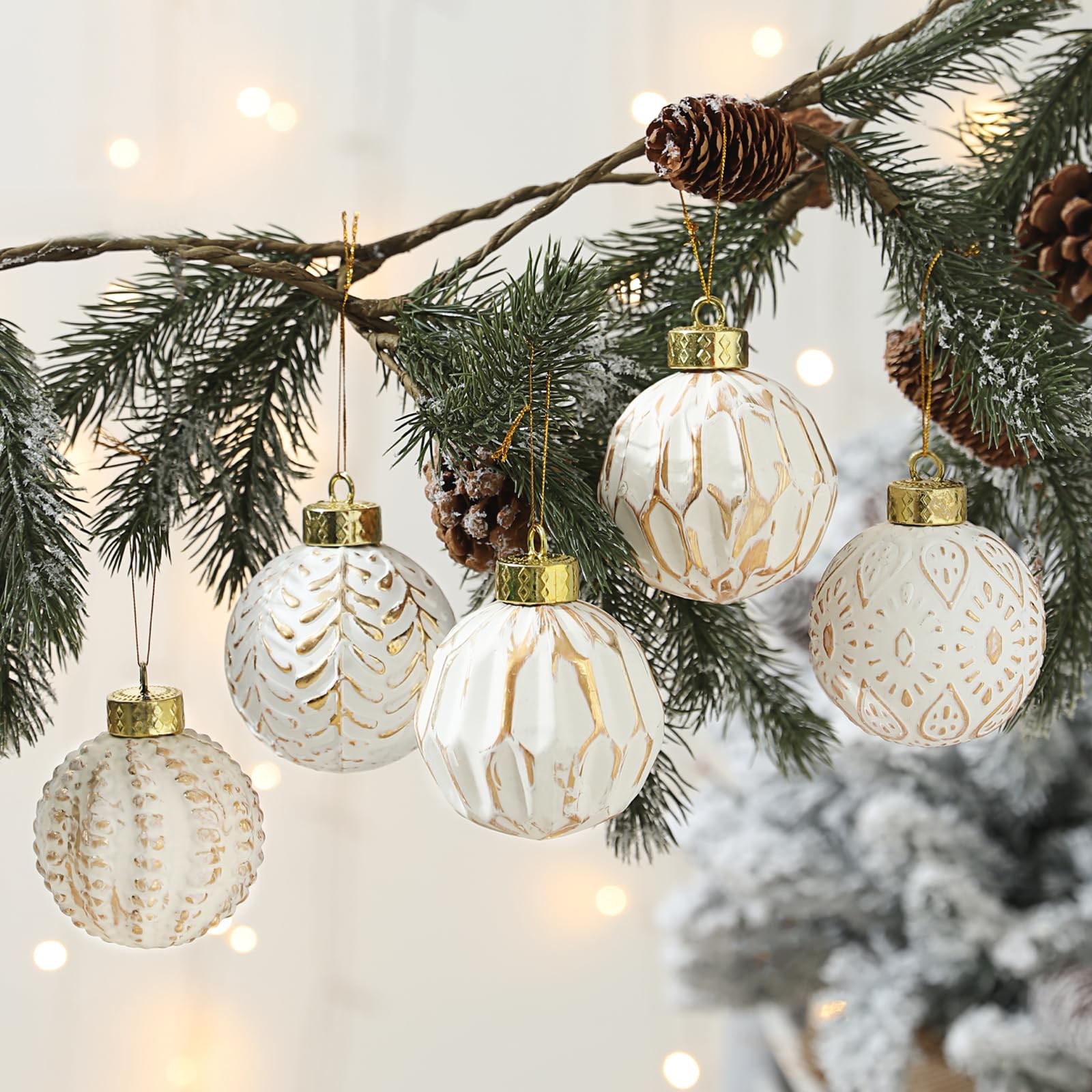 White and Gold Rustic Christmas Ball Ornaments, 3.15 inches Vintage Christmas...