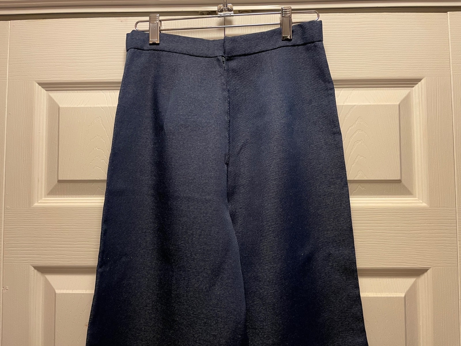 как выглядит Vintage 1970s Navy Blue Polyester Wide Leg Pants High Waisted Handmade 26 Waist фото