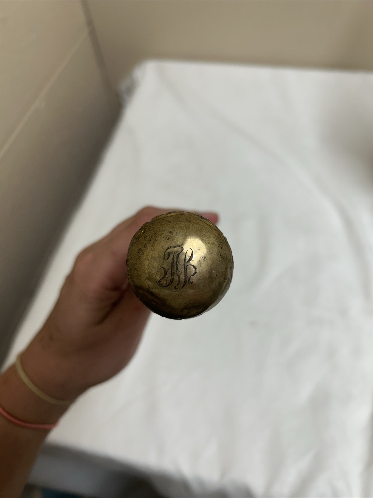 Antique Victorian Gold Plated Mother of Pearl Parasol Handle 7.75 Broken