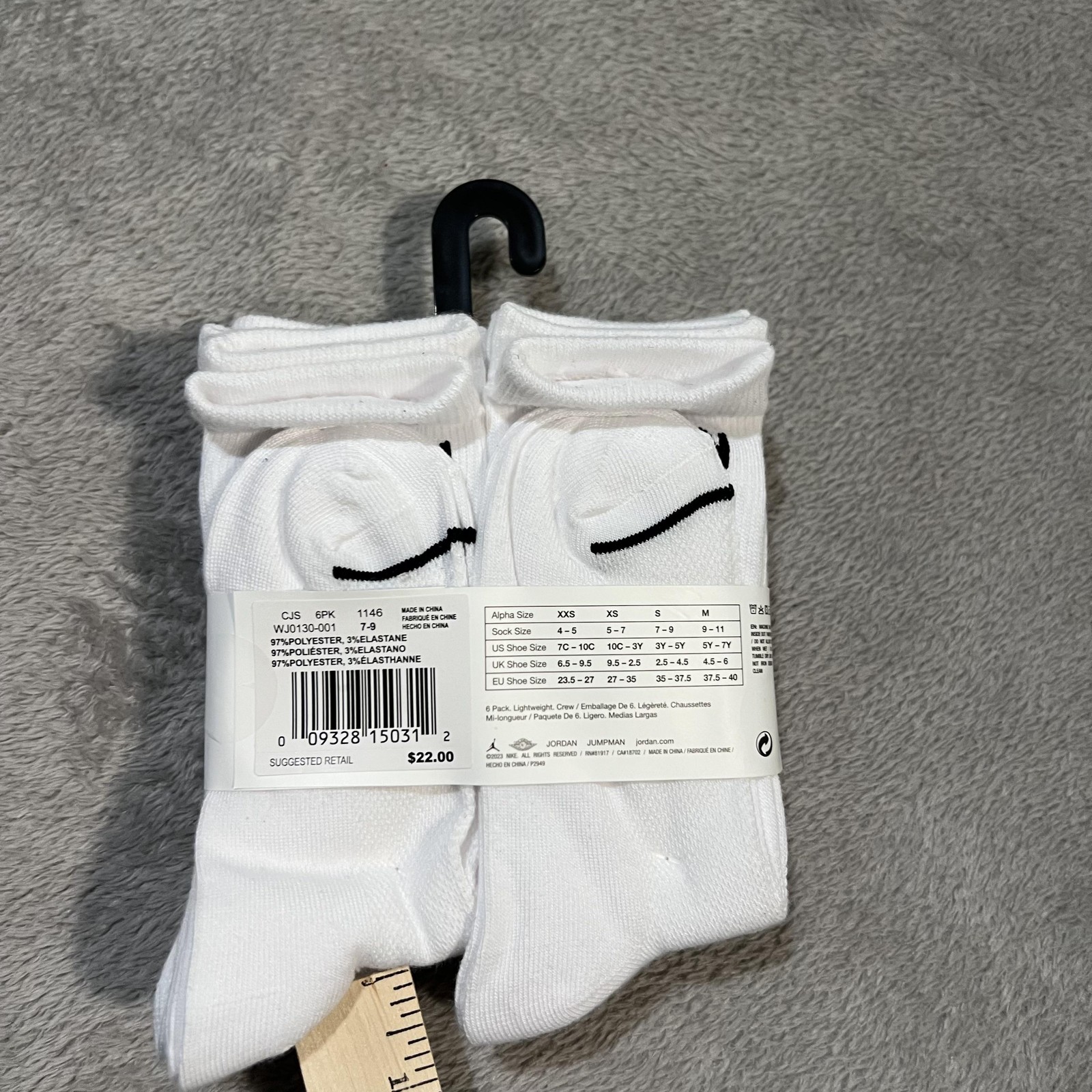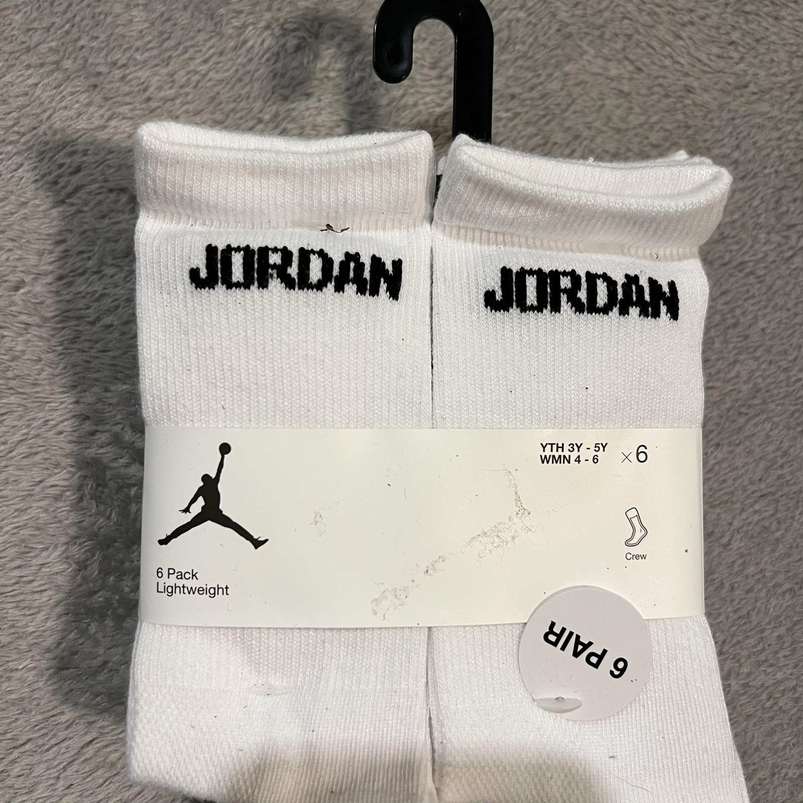 как выглядит Jordan Socks Youth 3Y-5Y White Crew Lightweight Logo 6 Pack фото