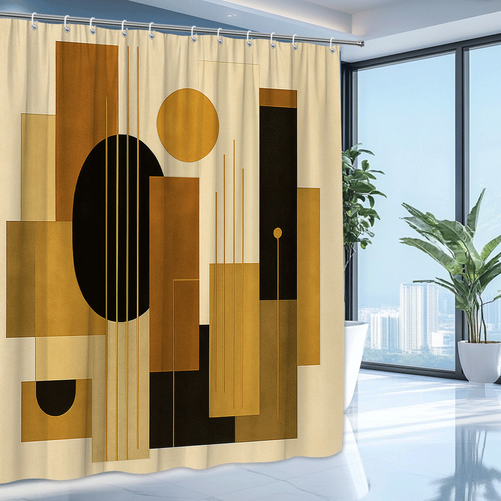 Modern Geometric Black and Gold Shower Curtain for Stylish Bathrooms