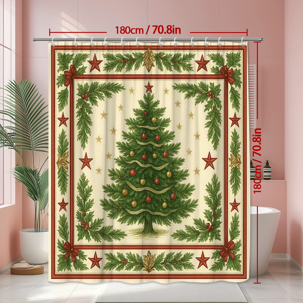 как выглядит Christmas Tree Shower Curtain with Festive Decorations фото