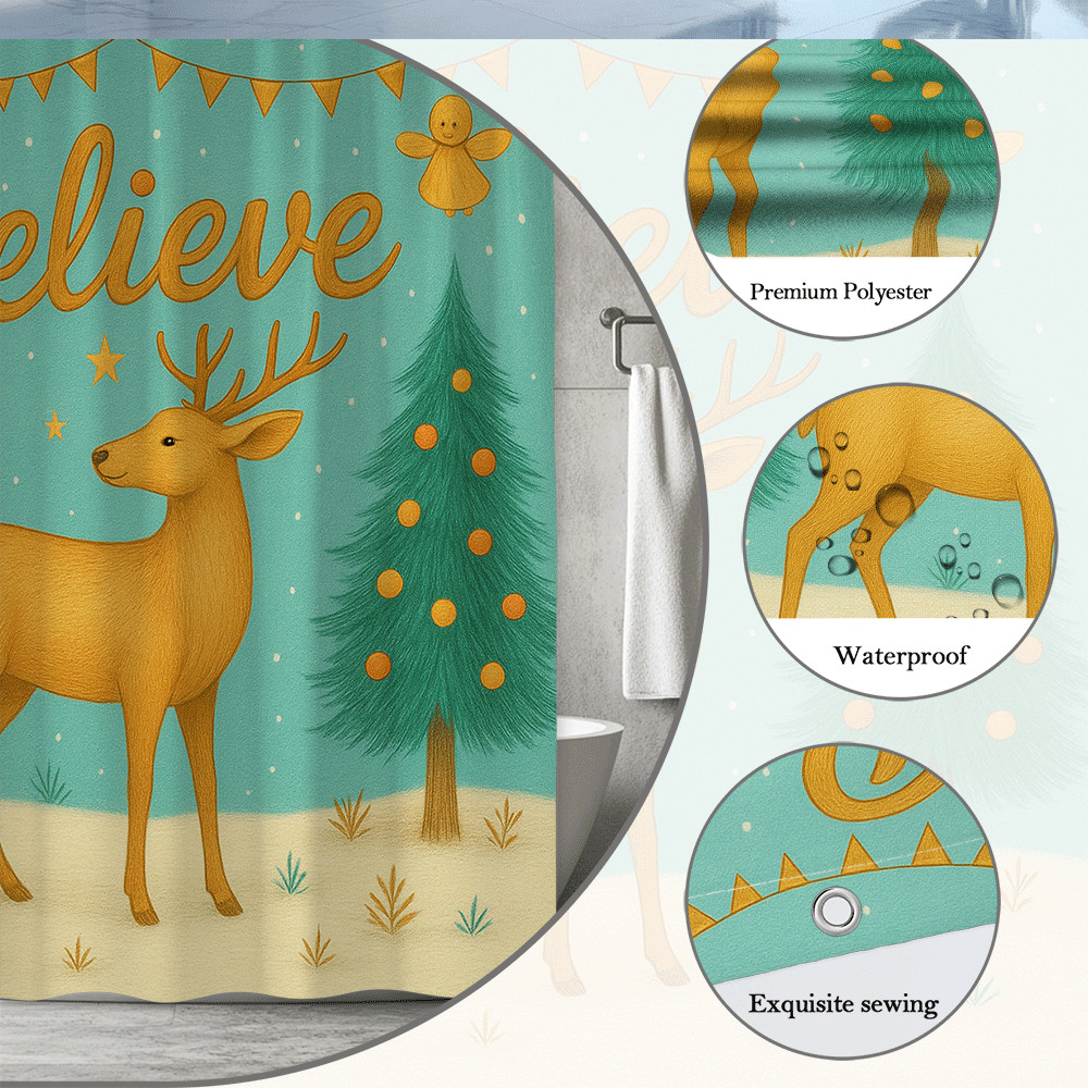 Whimsical Christmas Shower Curtain with Deer and Trees