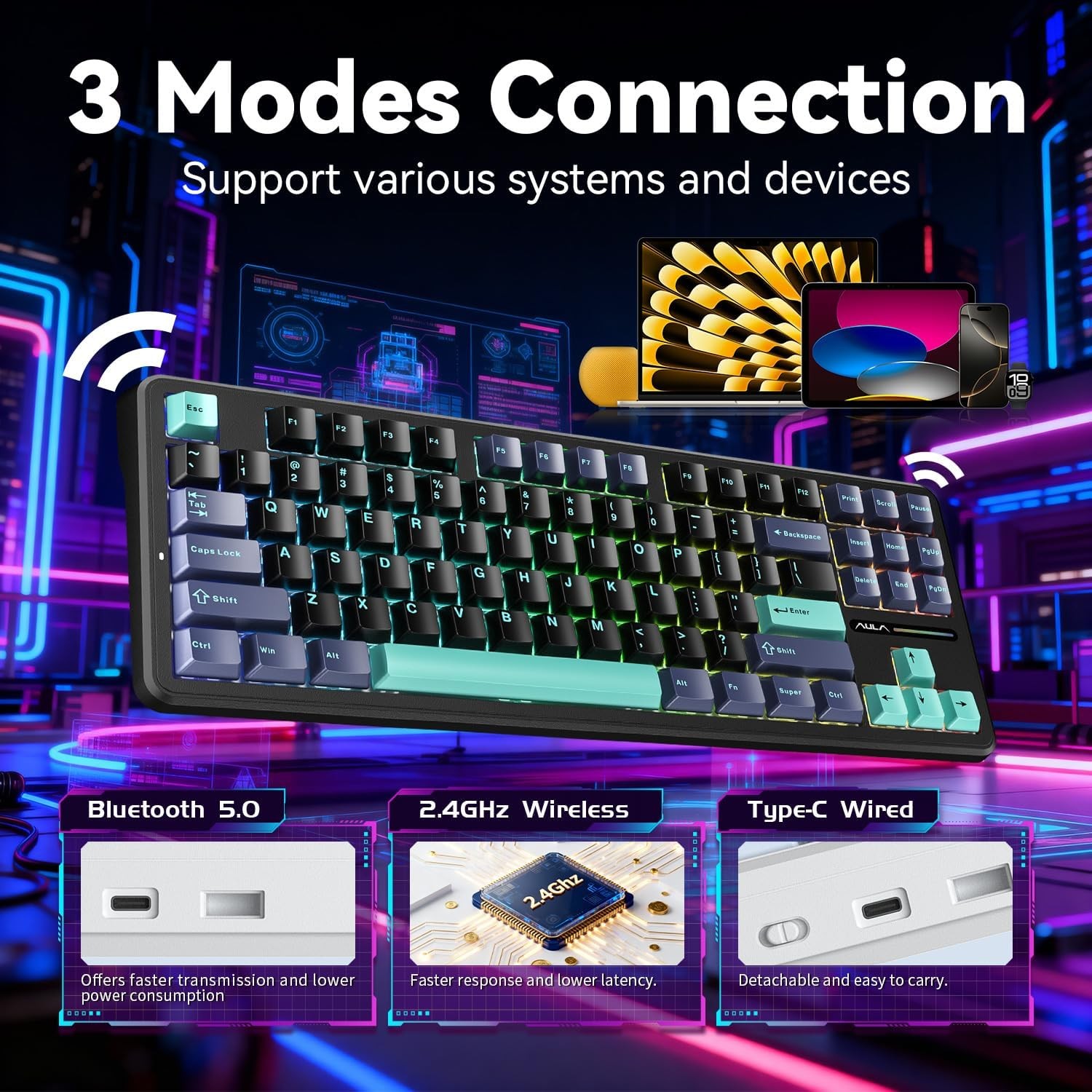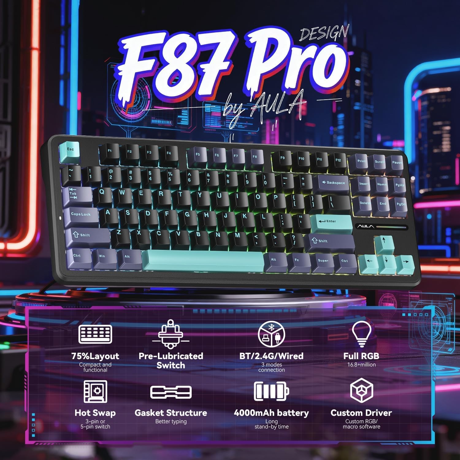 AULA F87 Pro Wireless Tri-Mode Mechanical Keyboard RGB Hot-Swap for Windows/Mac