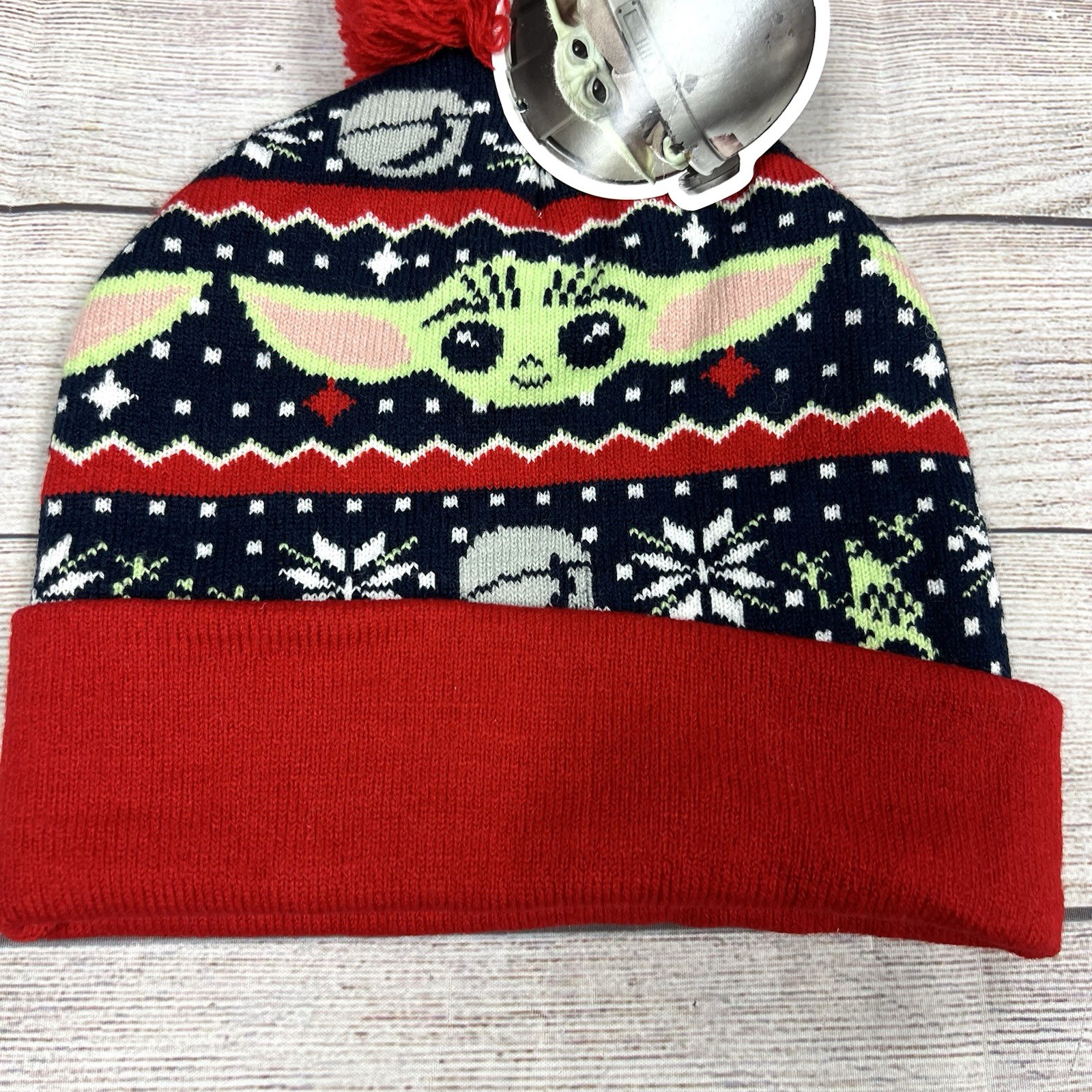 как выглядит Star Wars Mandalorian Baby Yoda Grogu Holiday Knit Beanie Hat NWT Christmas фото