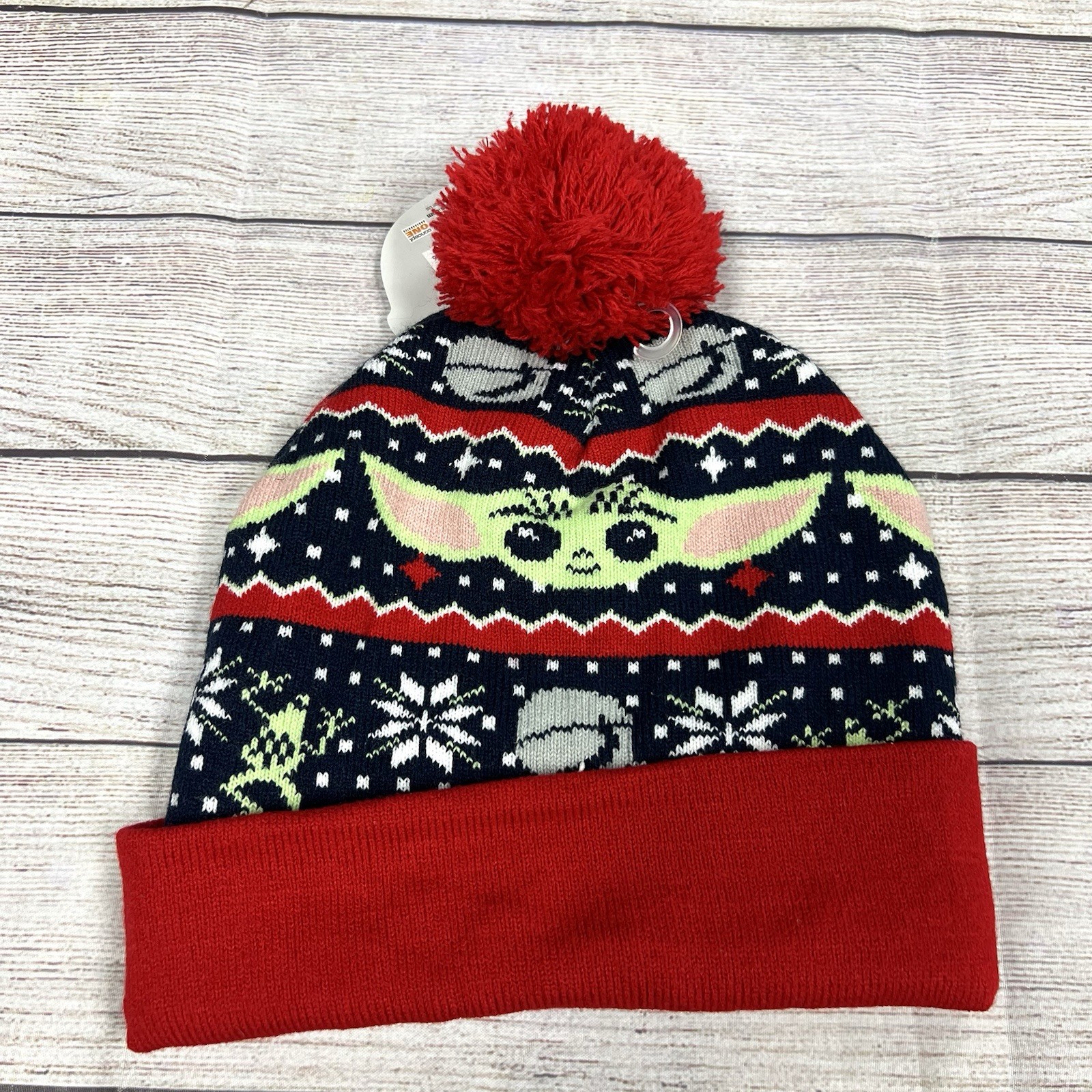 • Star Wars Mandalorian Baby Yoda Grogu Holiday Knit Beanie Hat NWT Christmas