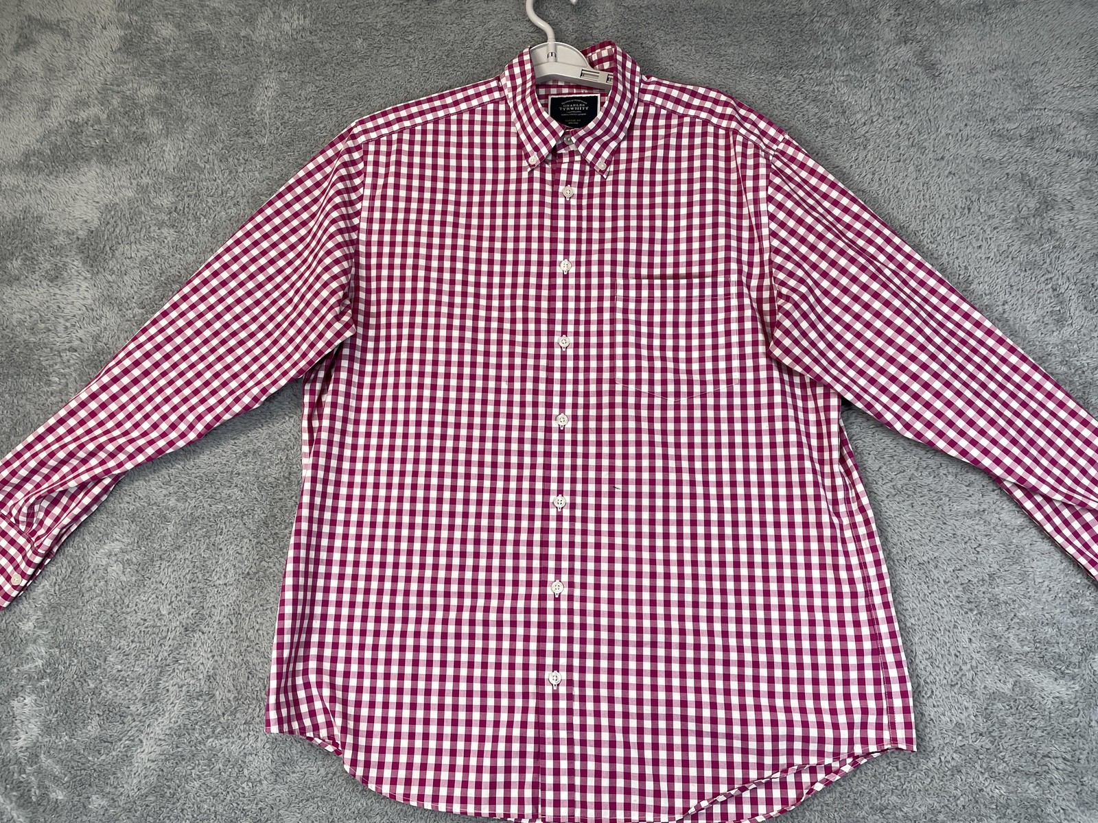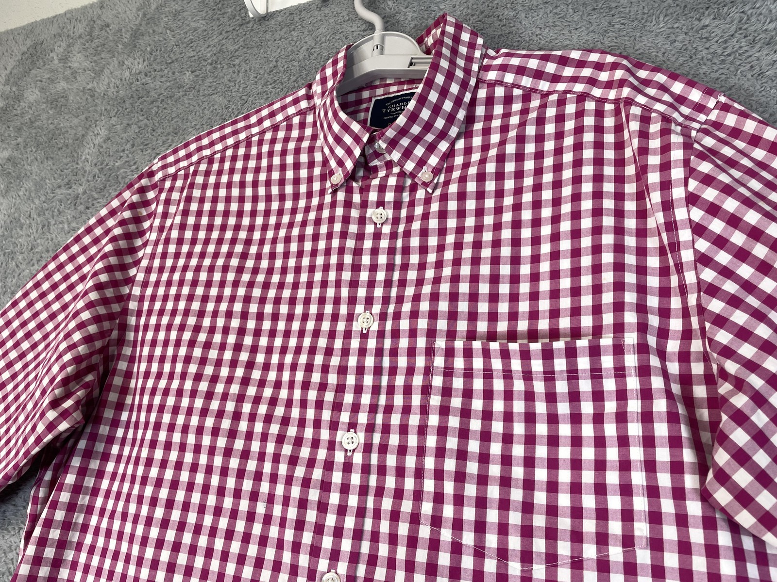 как выглядит Charles Tyrwhitt Shirt Mens Large Pink Gingham Classic Fit Non Iron Button Down фото