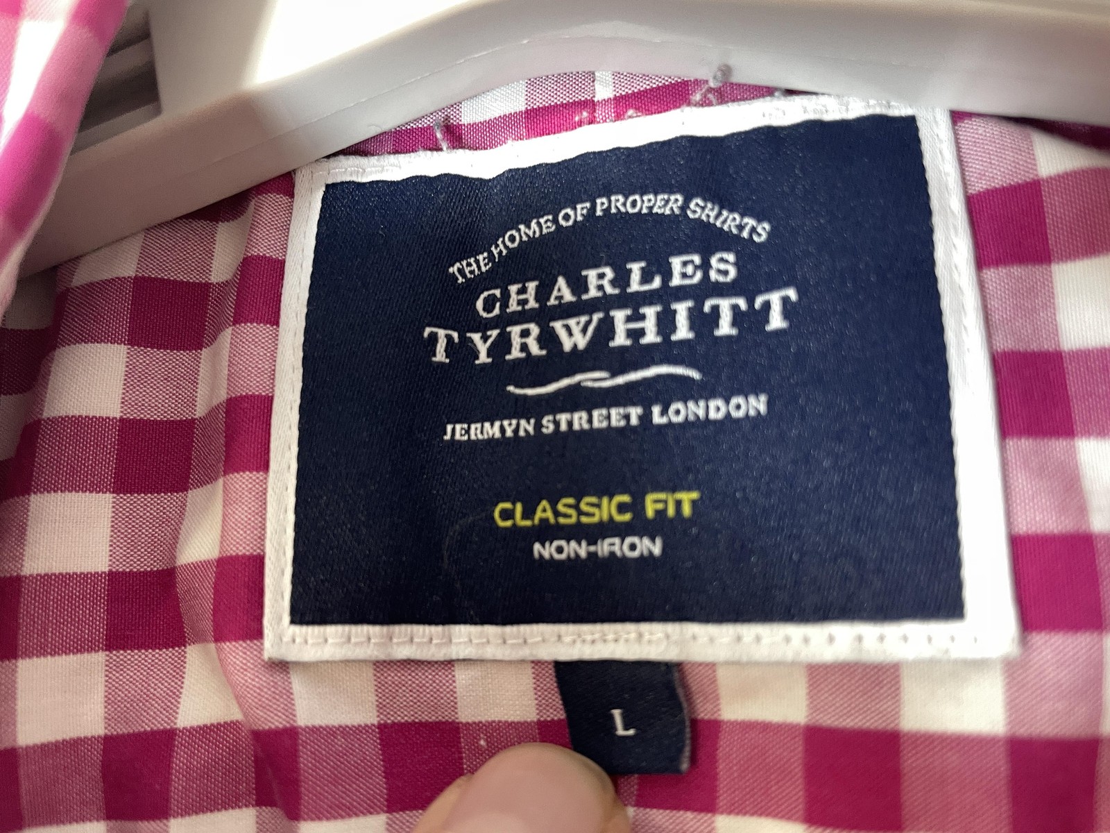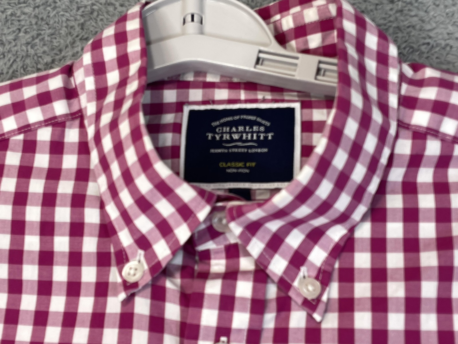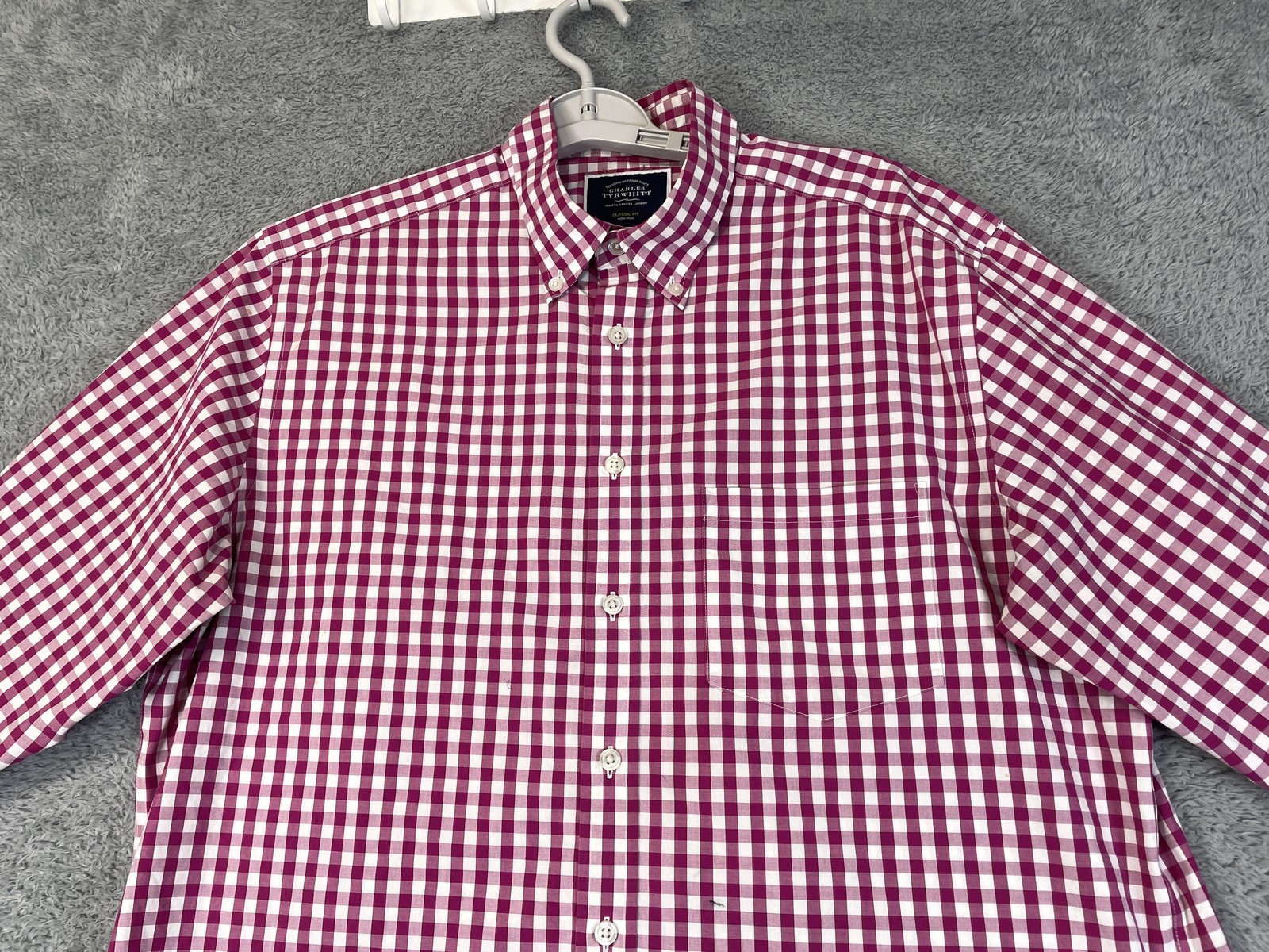 Charles Tyrwhitt Shirt Mens Large Pink Gingham Classic Fit Non Iron Button Down