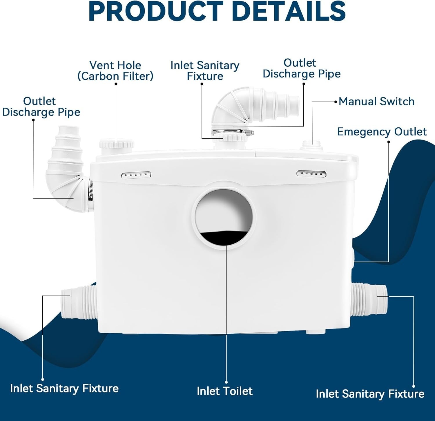 как выглядит 1500W Macerator Pump 2HP Grinding Blade PCB Function Toilet Pump Upflush to 32 фото