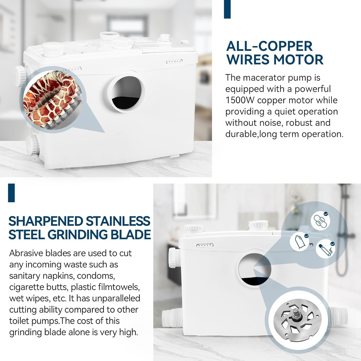 1500W Macerator Pump 2HP Grinding Blade PCB Function Toilet Pump Upflush to 32