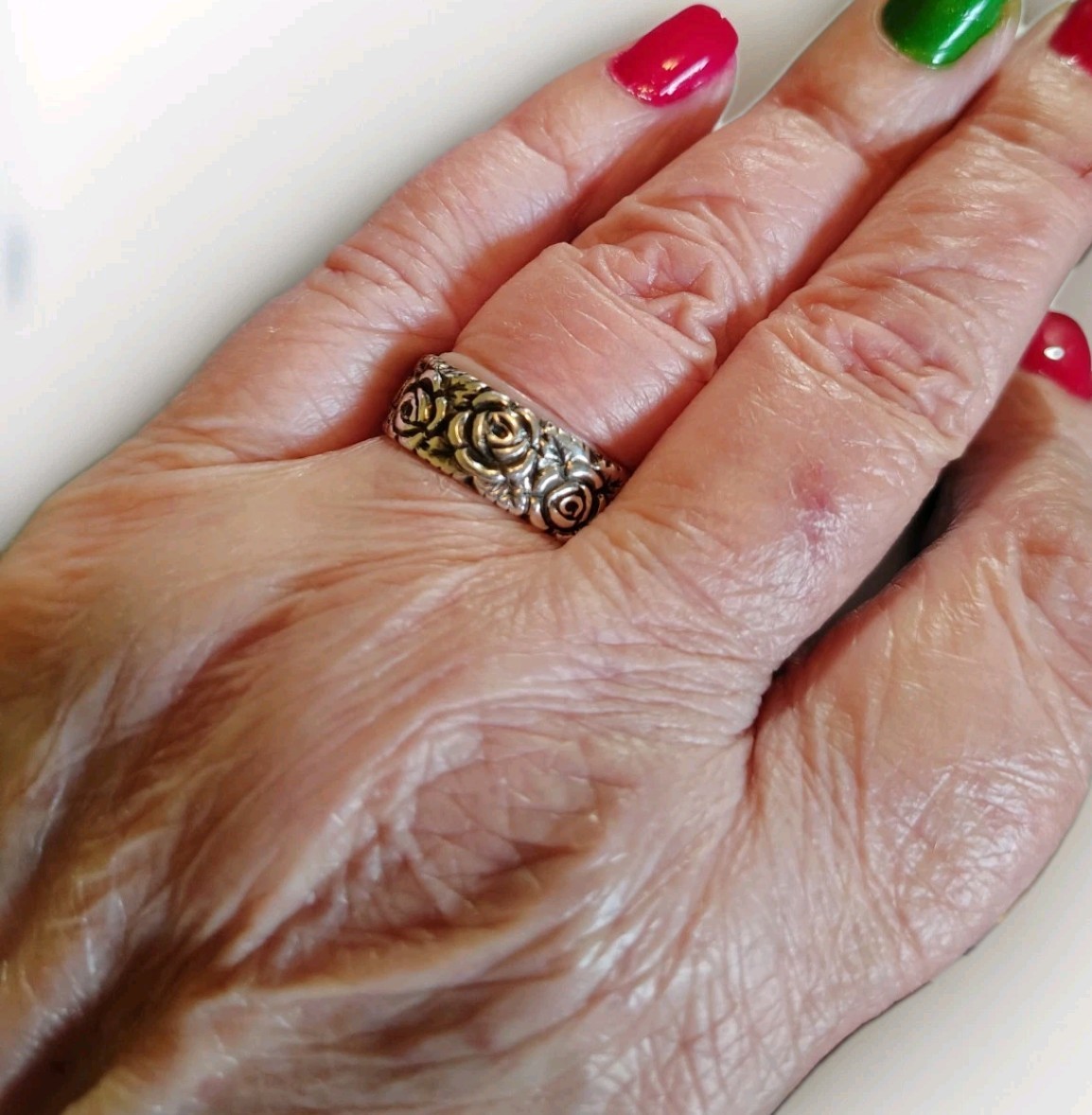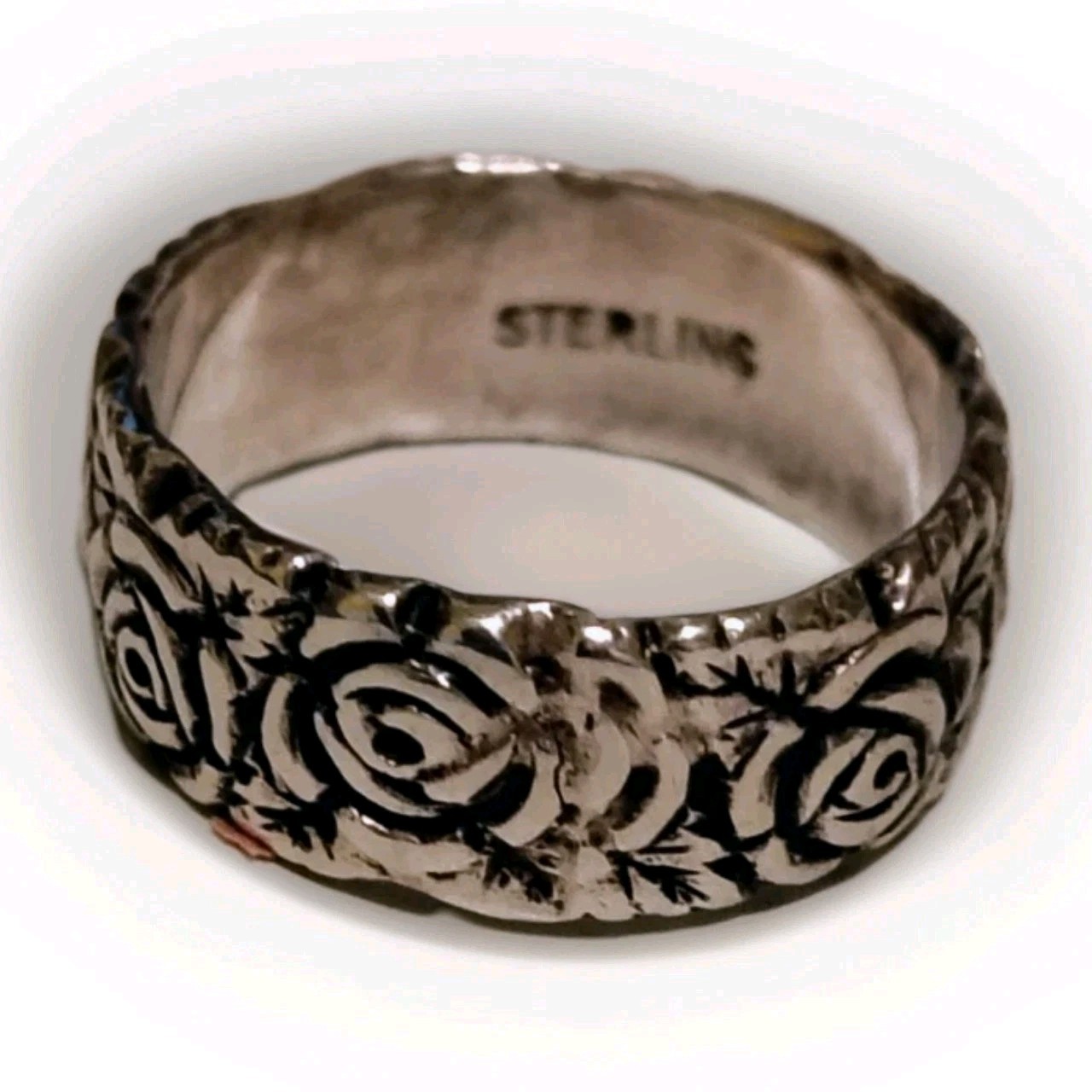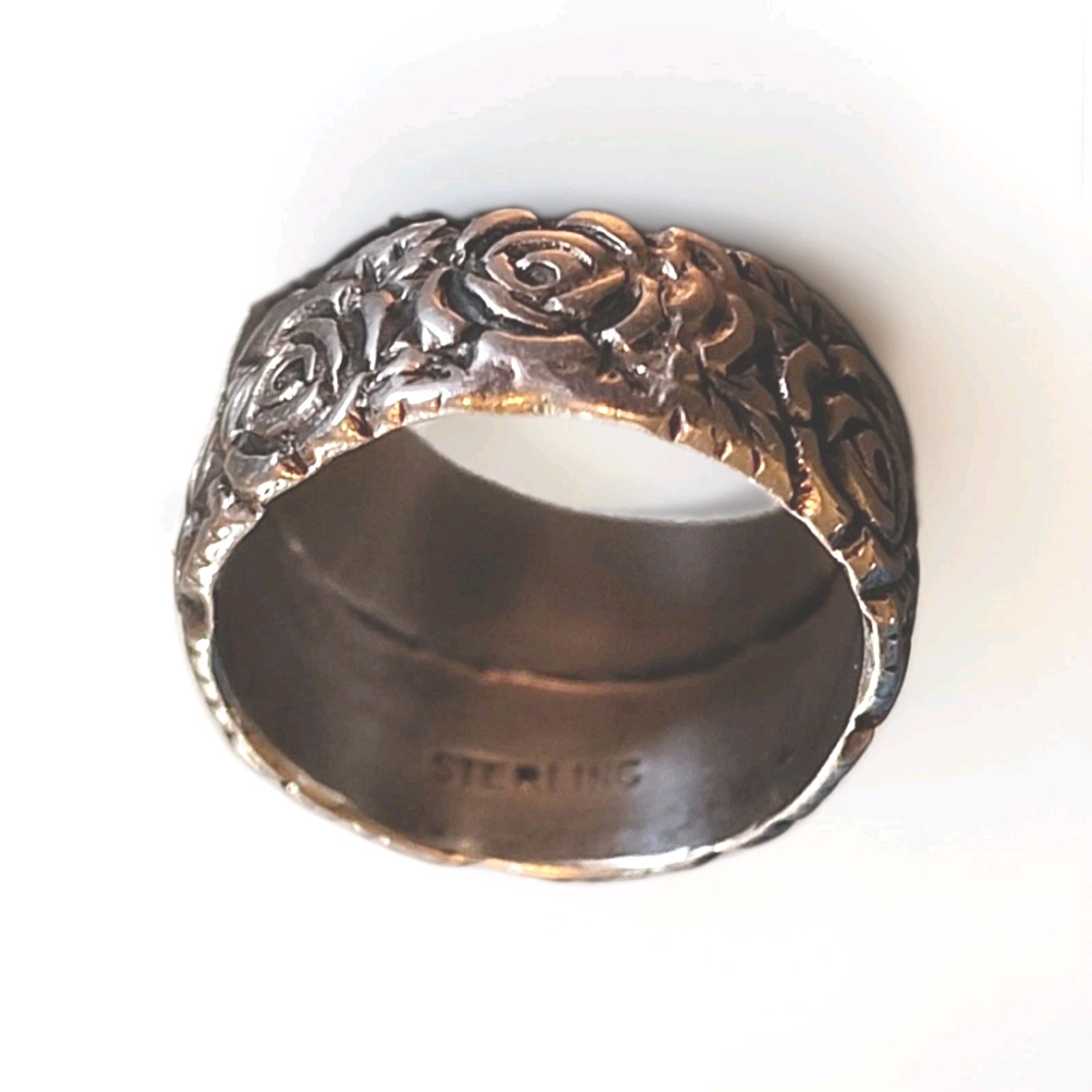 как выглядит .925 Sterling Silver Ladies Ring Band Engraved Roses Flowers Vintage 5grm SZ 7 фото