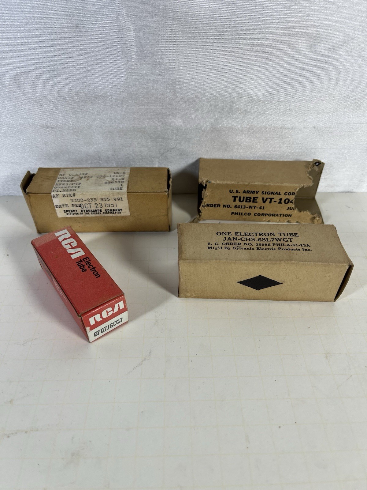4 Vintage Vacuum tubes: Philco, RCA, Sperry, Sylvania