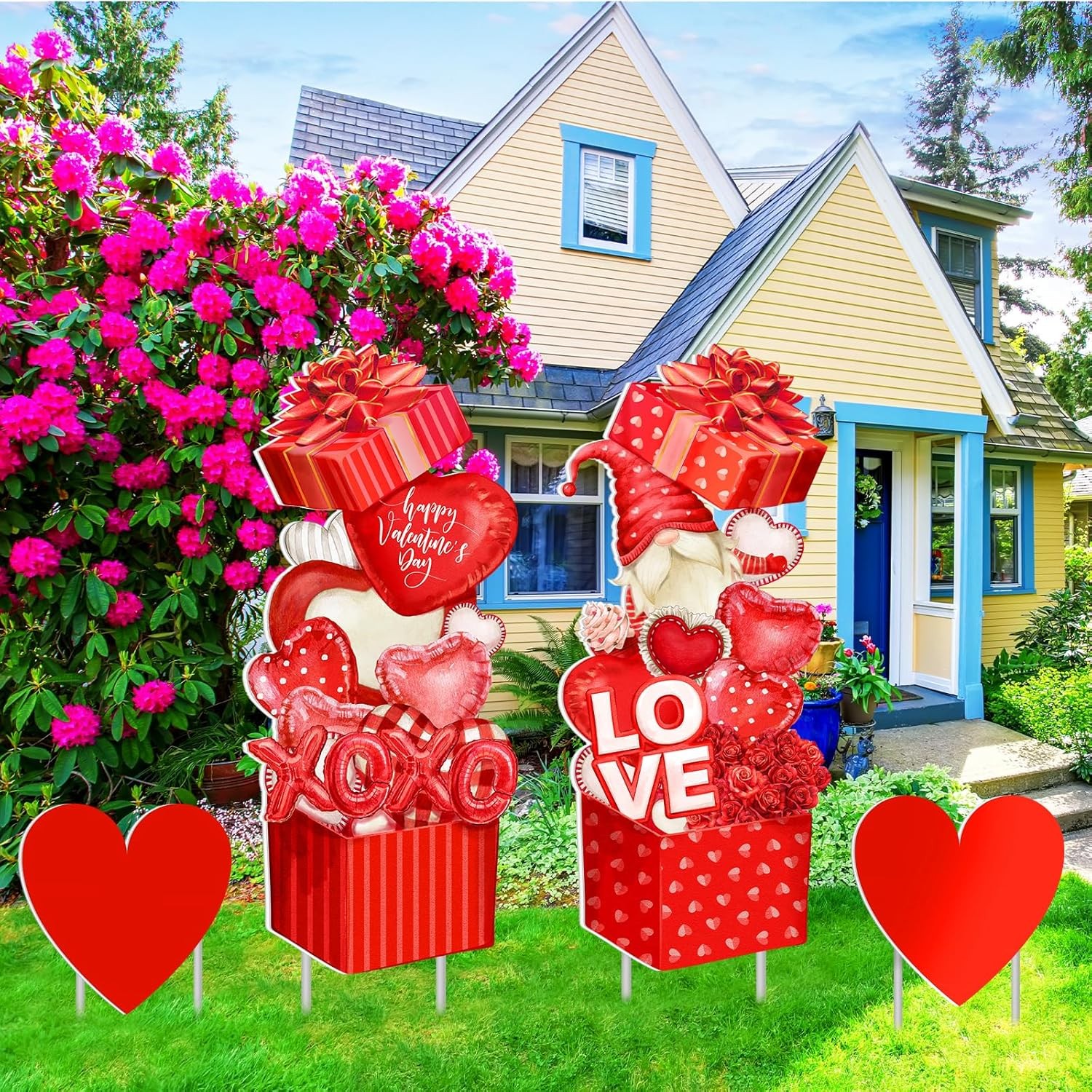 4 Pcs Valentine's Day Yard Signs Gnome Outdoor Sign with Stakes Valentine Red He