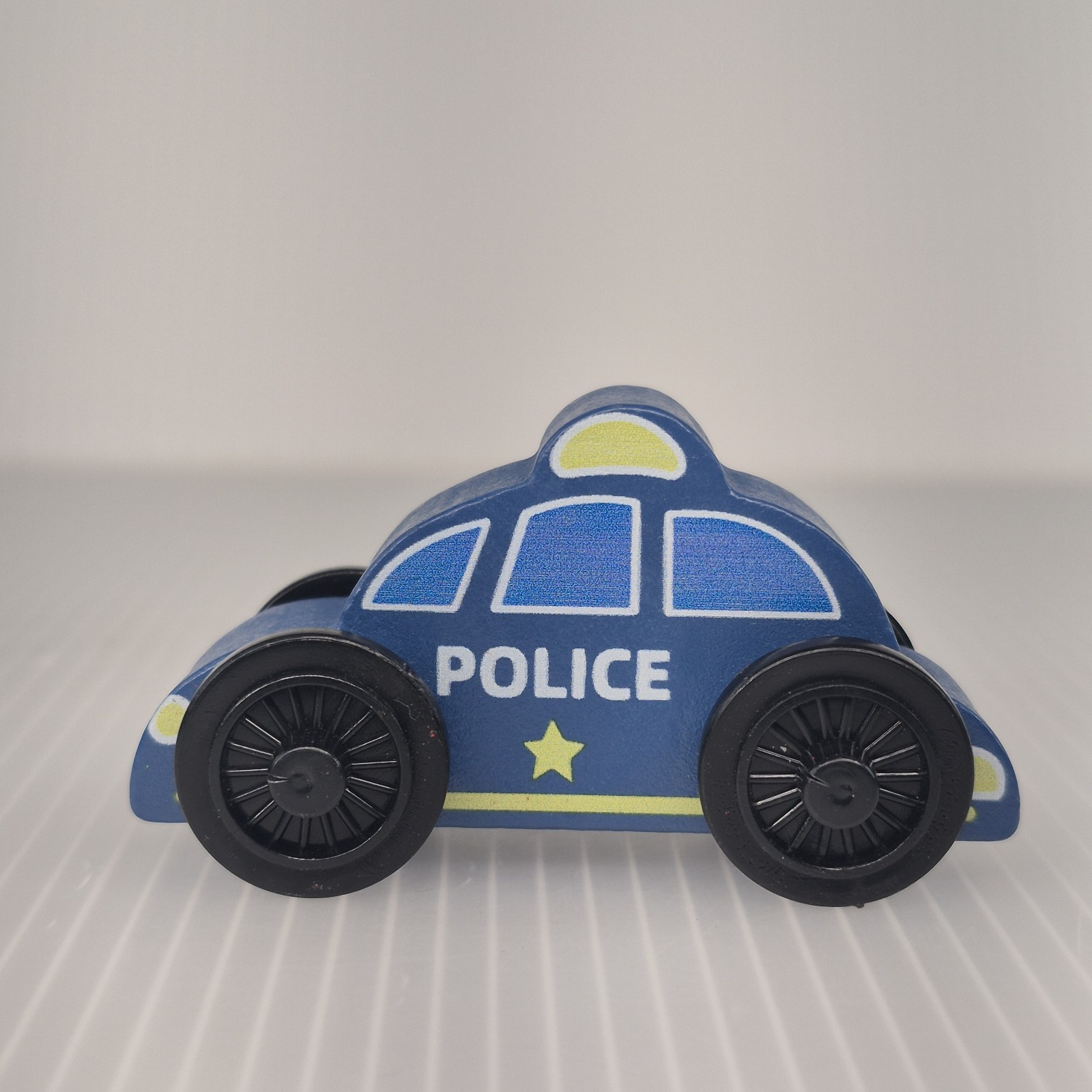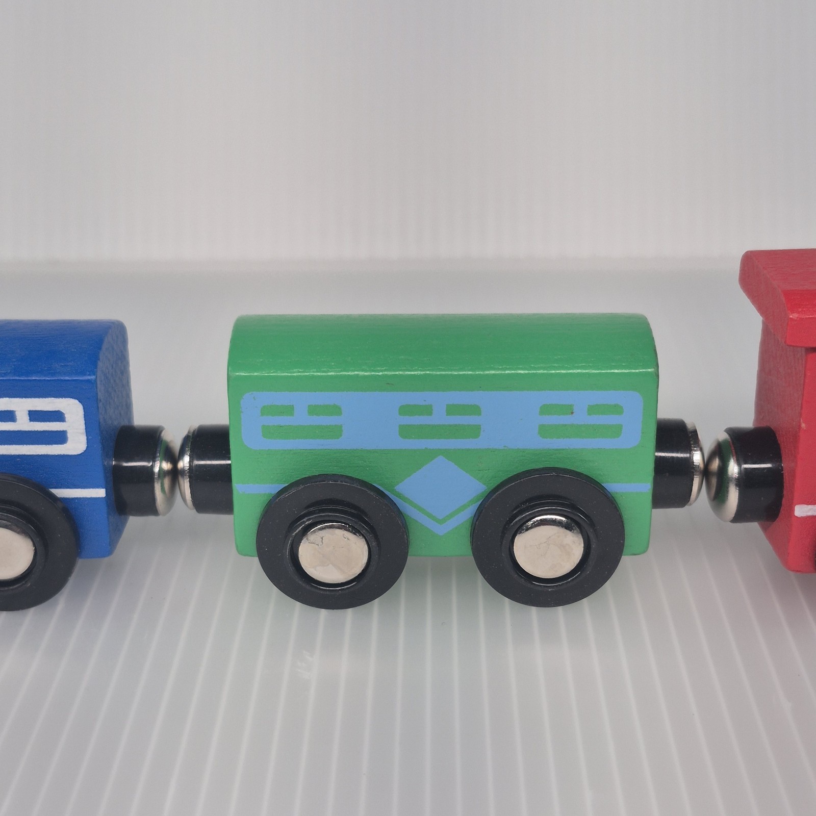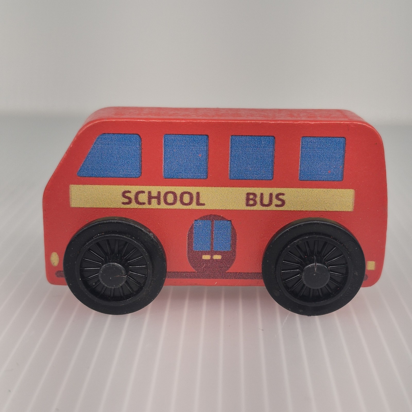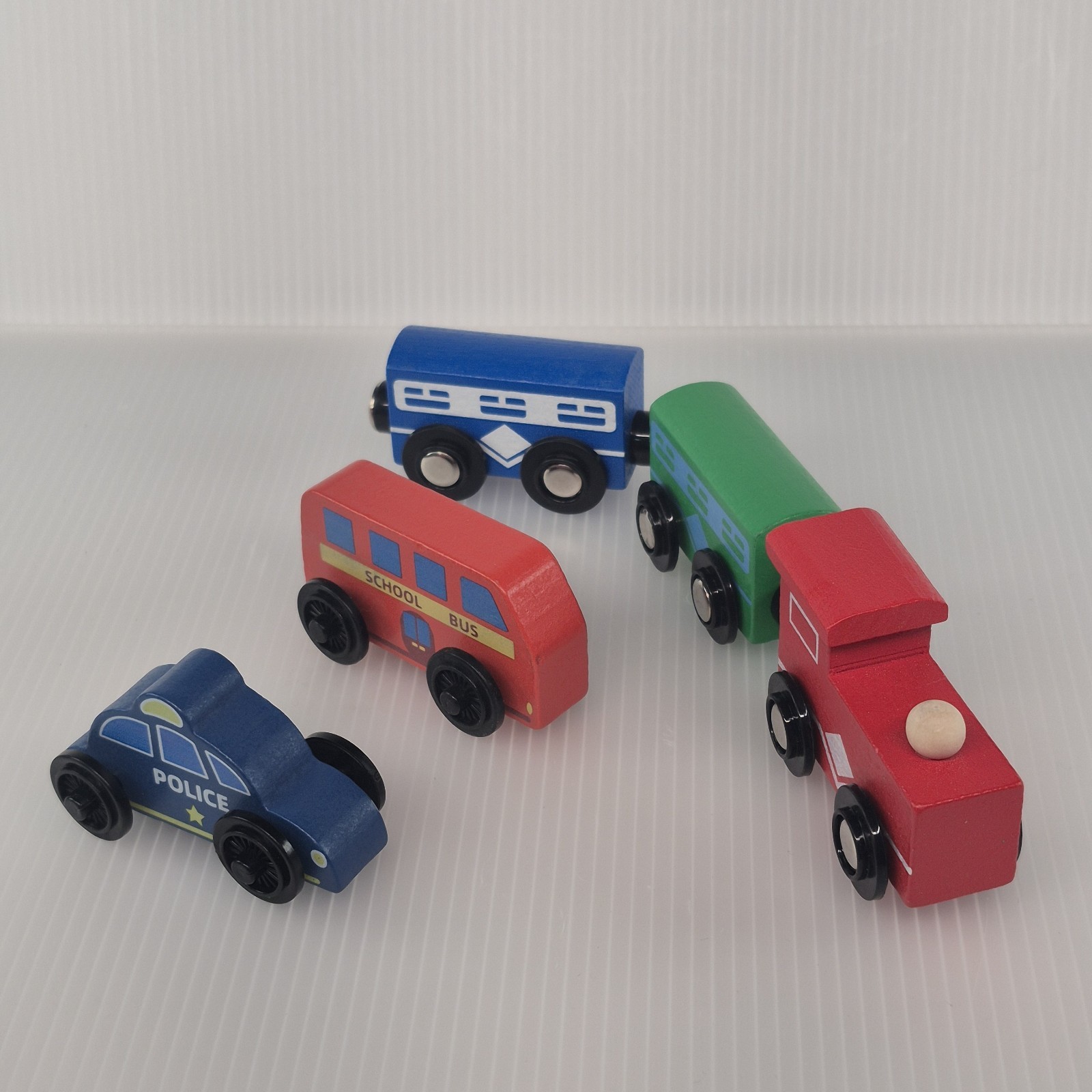BRIO Wooden Railway red engine train 2 coach, police car, school bus New