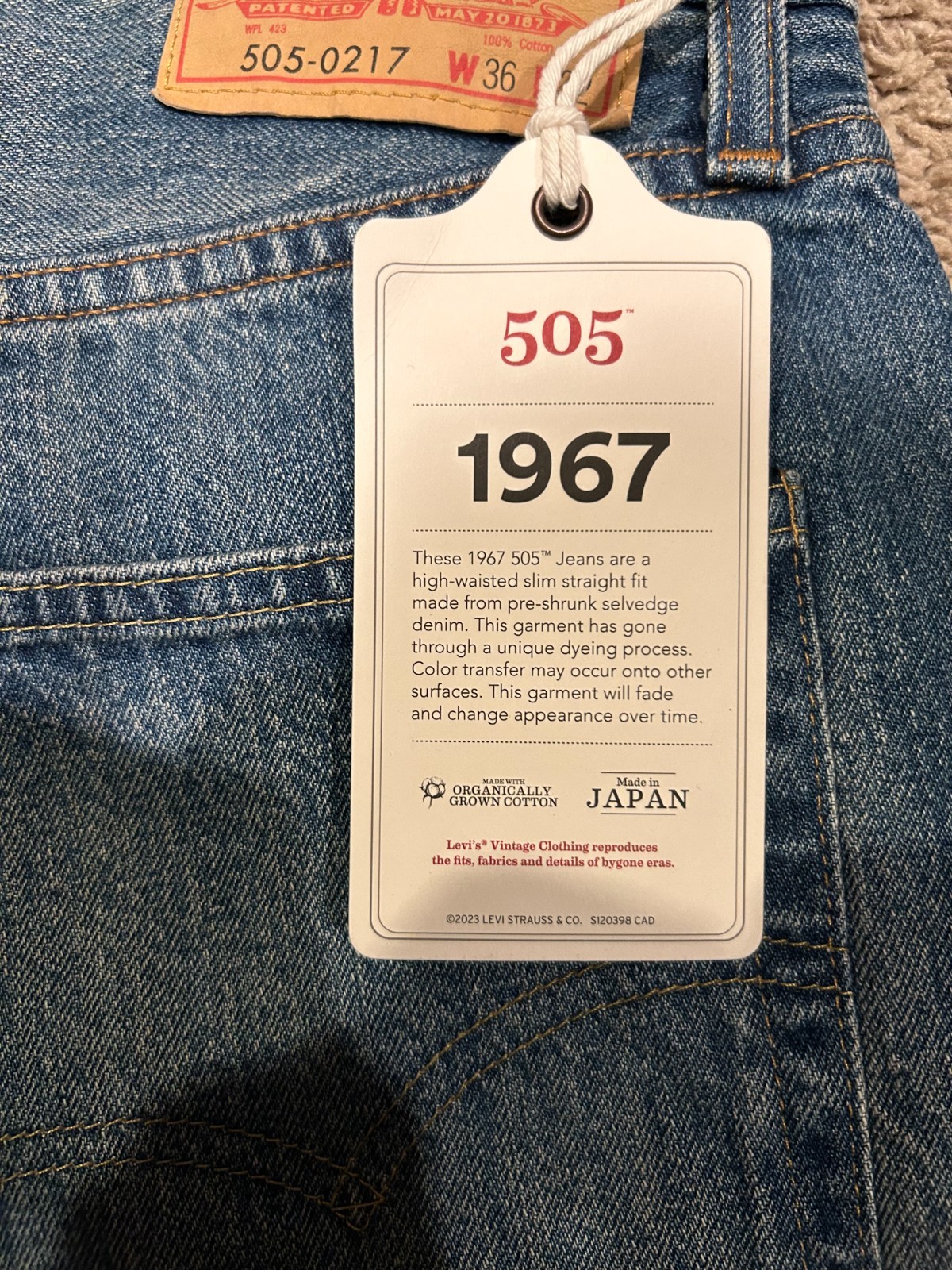 Levi's Vintage Clothing LVC 1967 505 Selvedge Jean Made in Japan 36X32 RT 325