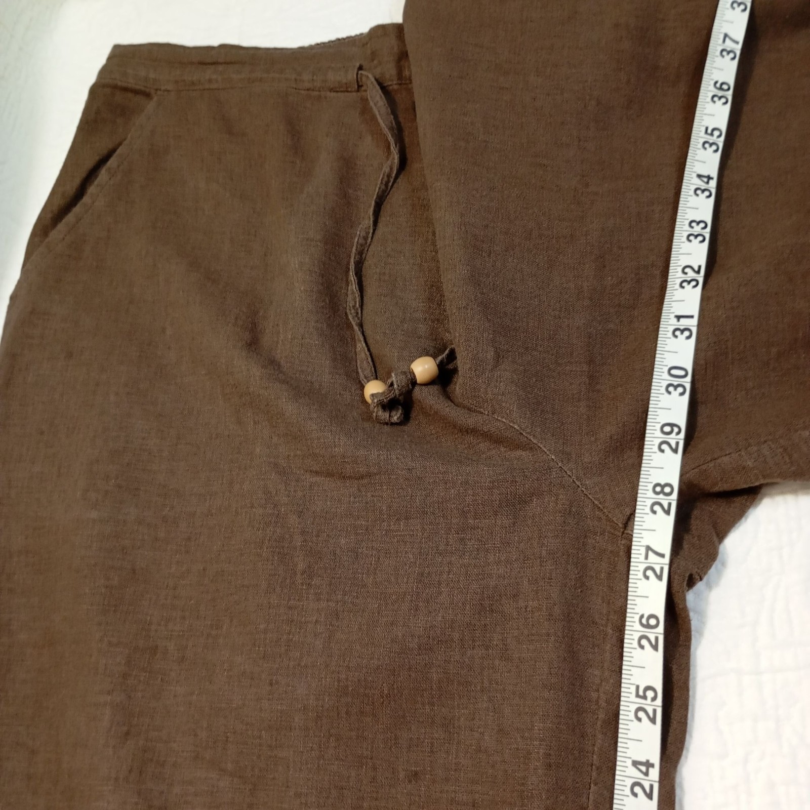 как выглядит Erika Pants Womens Brown Linen-Blend Relaxed Fit Elastic Waist Drawstring фото