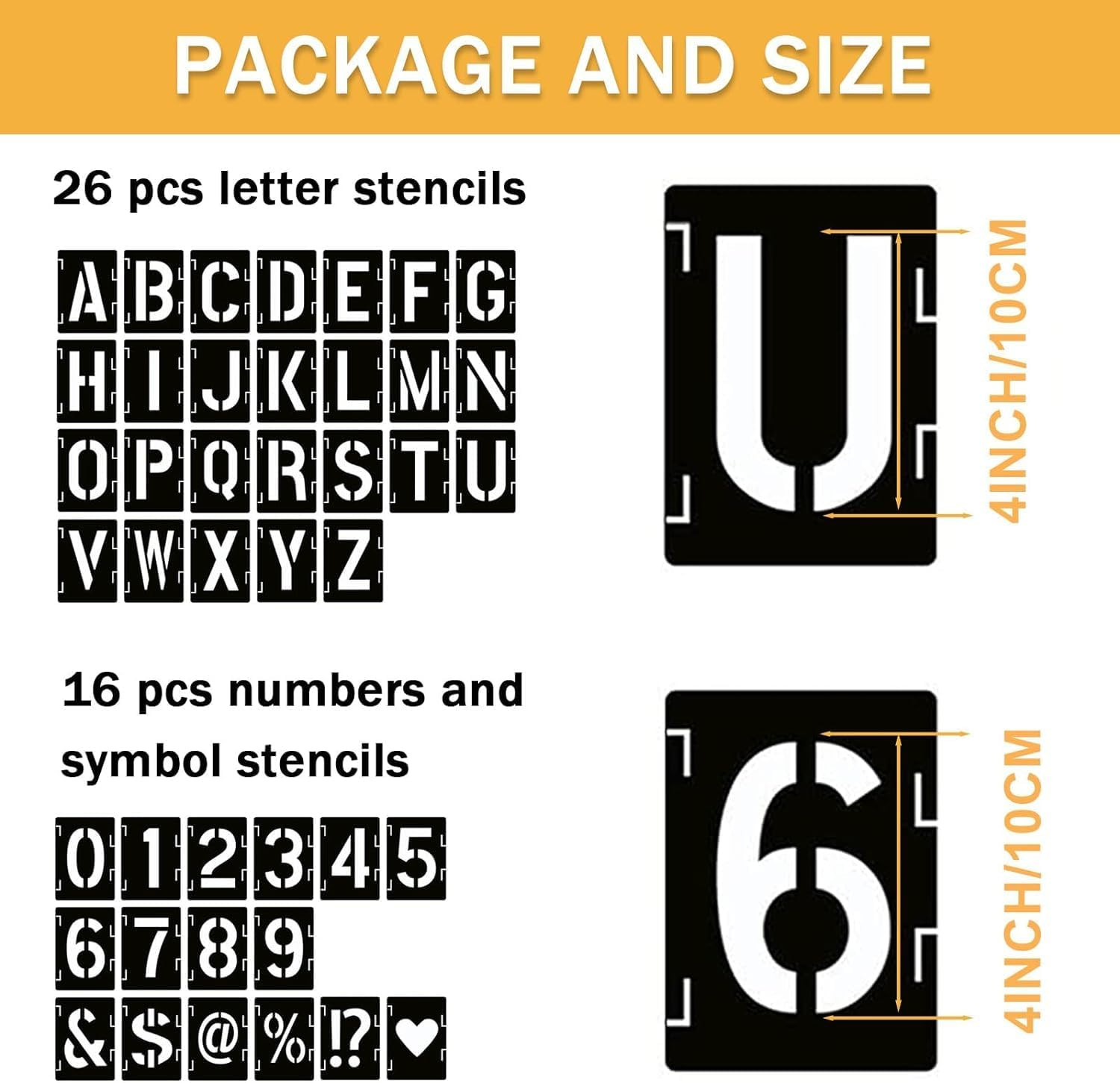 42 Piece Letter Stencils - 3.5 Inch, Reusable Alphabet Number Stencils for Spr