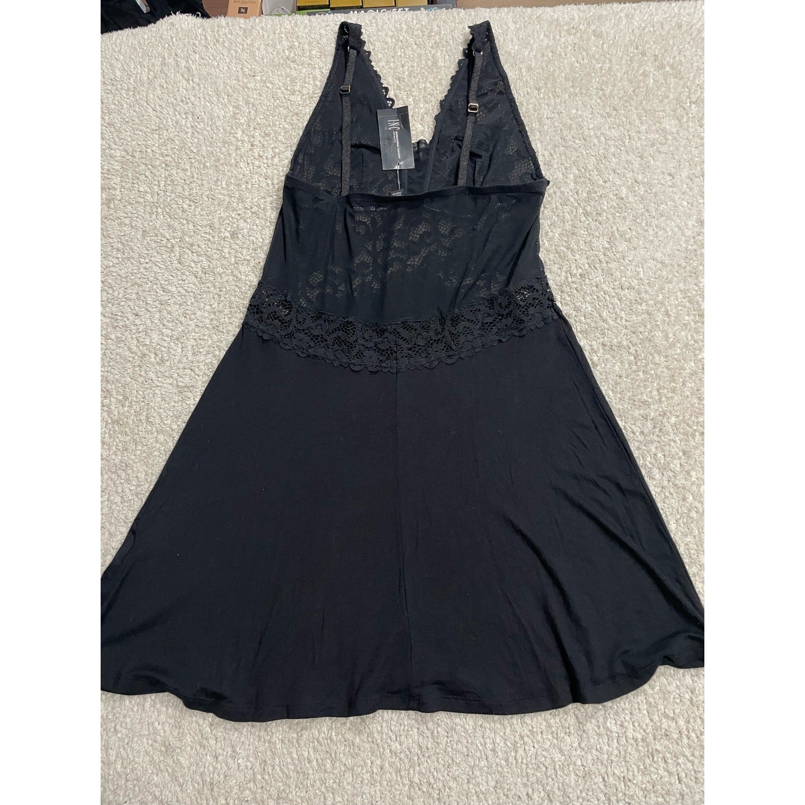 INC International Concepts Womens XS Sleeveless Lace Chemise Dress Black NEW