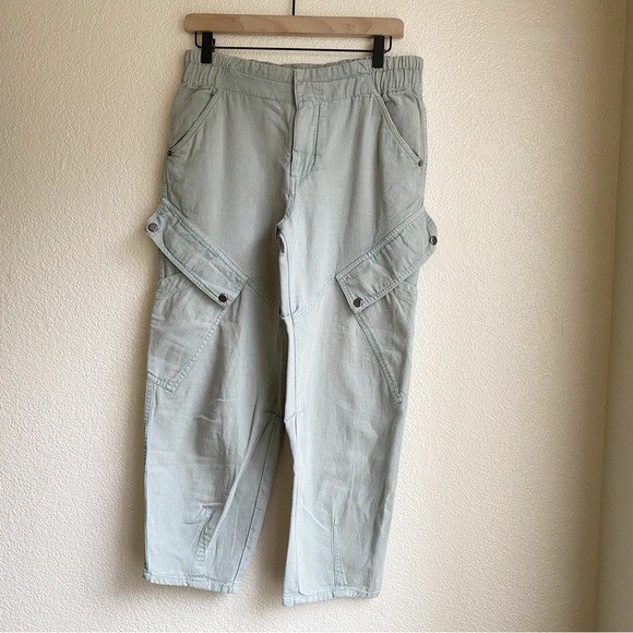 Anthro Pilcro Size Medium Utility Cargo Pants Banded Waist Pocket Sage Green