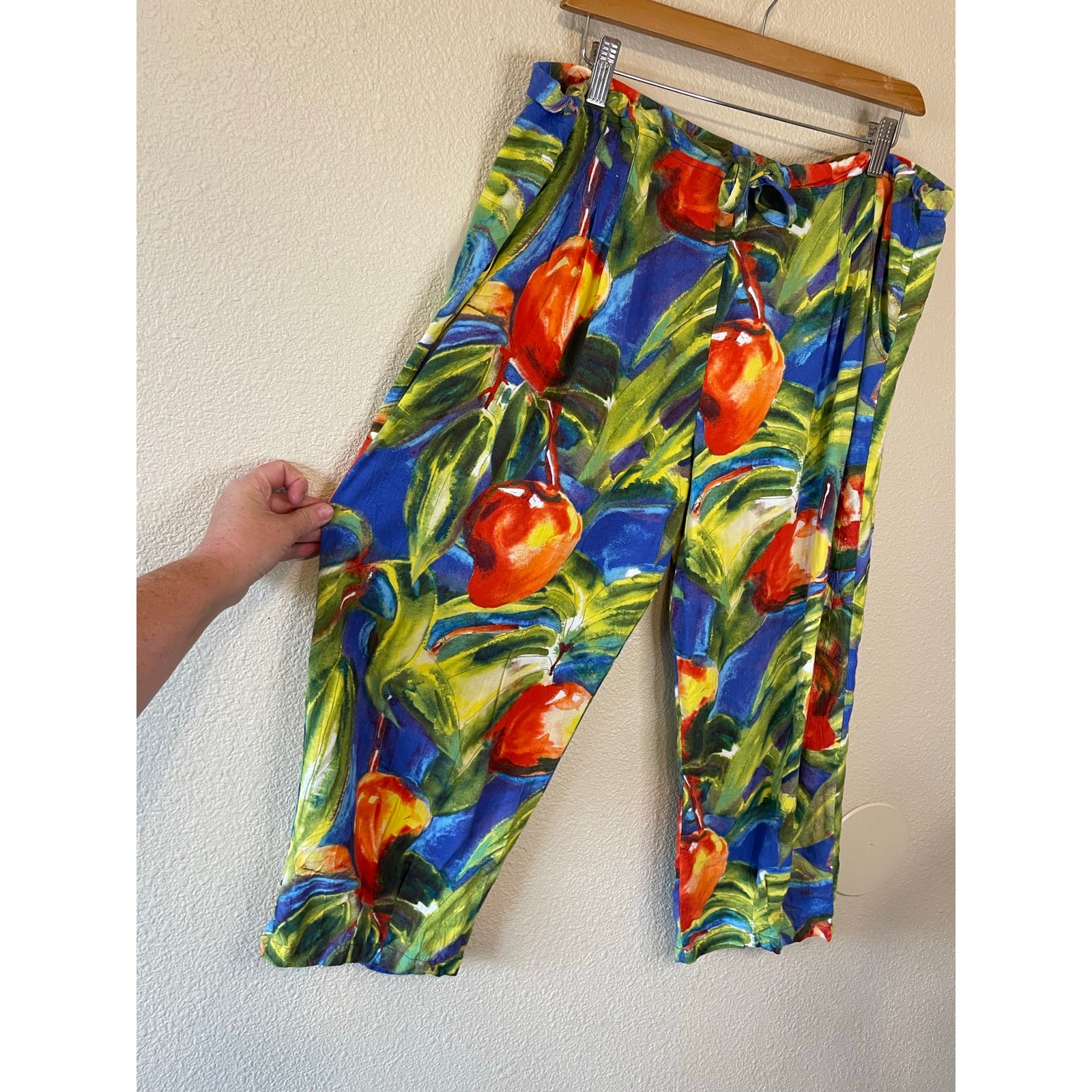 как выглядит VTG Jams World Tropical Fruit Print Multicolor Rayon Super Soft Capri Pants Med фото