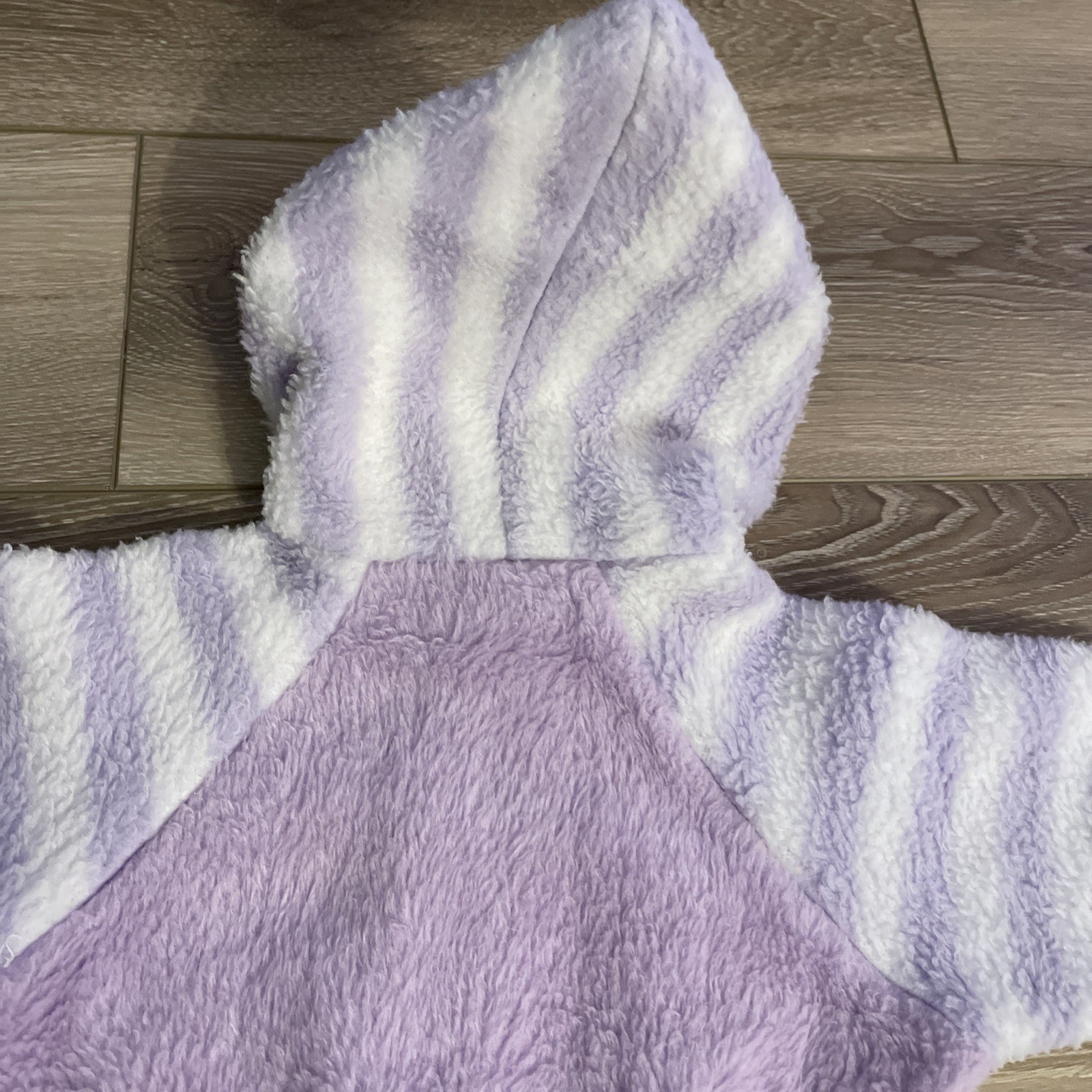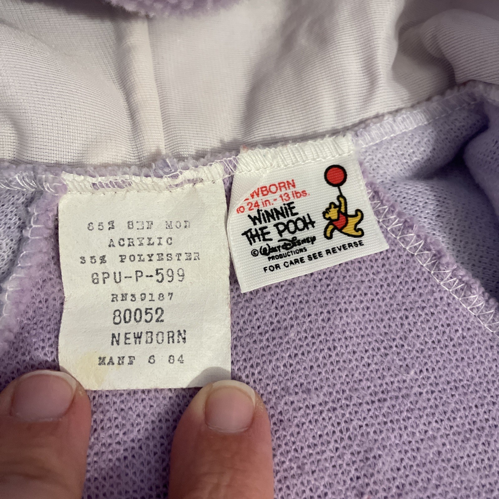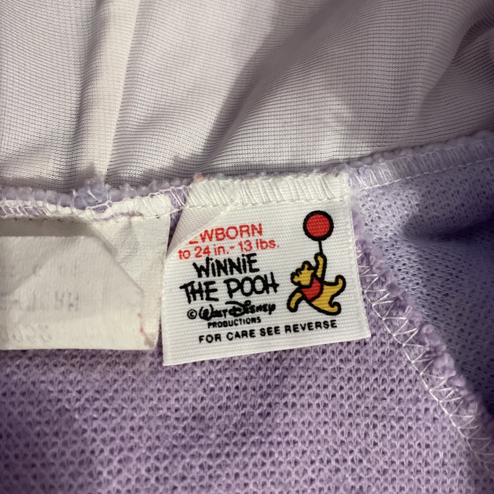 как выглядит Vintage Winnie The Pooh Newborn Purple Striped Hooded Footie Fleece One Piece фото