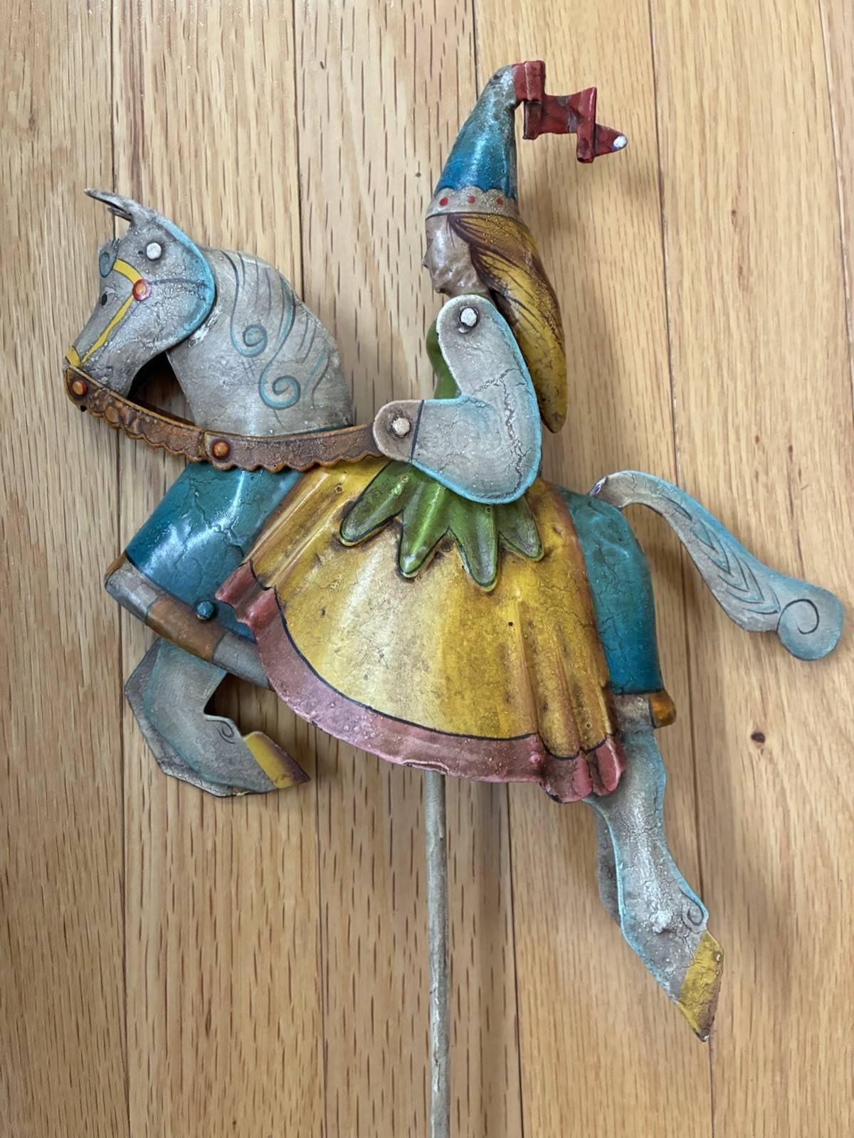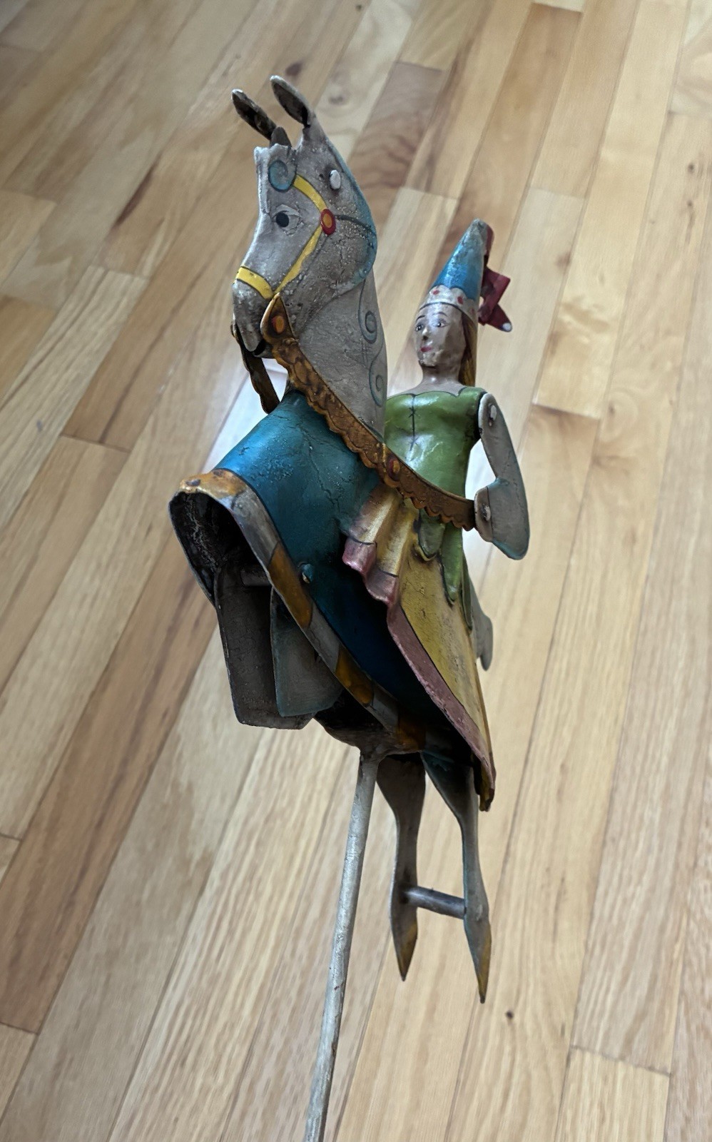 как выглядит Vintage Medieval Princess On Horse Figure Sky Hook Metal Balance Toy Folk Art фото